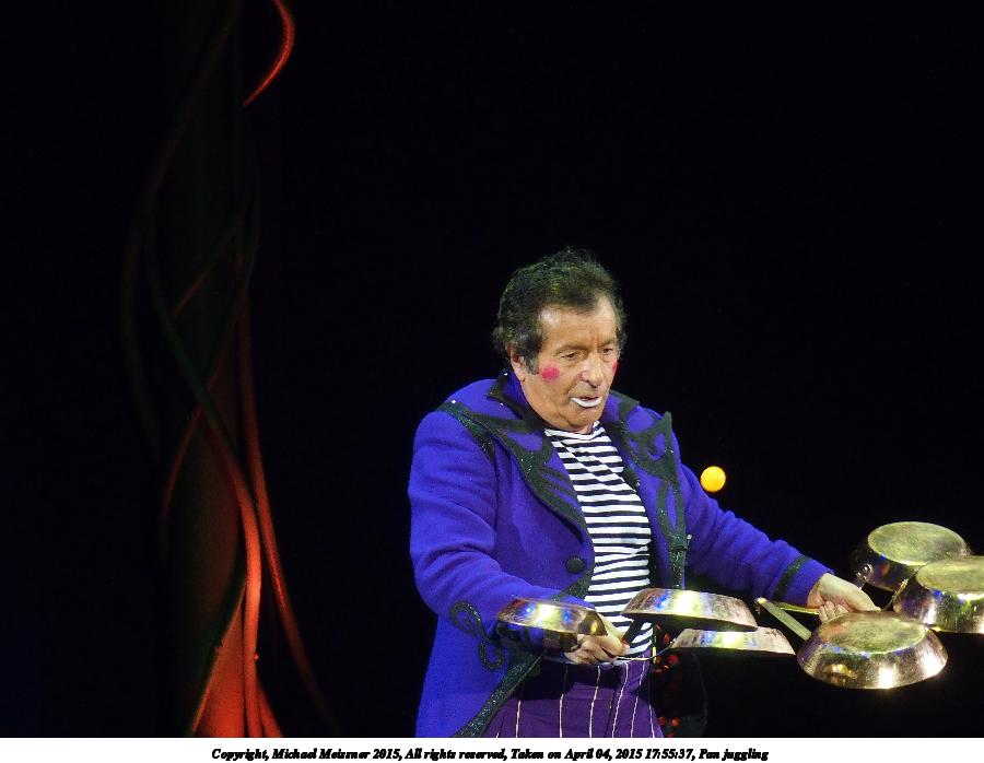 Picture #25: Pan juggling #3 900x698, 78,920 bytes (78K), (html file) Copyright, Michael Meissner 2015, All rights reserved Olympus Stylus-1 camera f/2.8, ISO 800, 1/80 sec, 64.3mm, auto mode, vivid color, spot metering, IS Auto, noise reduction auto, noise filter low 35mm equivalent focal length 300.0mm Programs used: crop, raw therapee Taken by Michael Meissner on April 04, 2015 17:56:03 Last modified on April 22, 2015 at 23:56 |