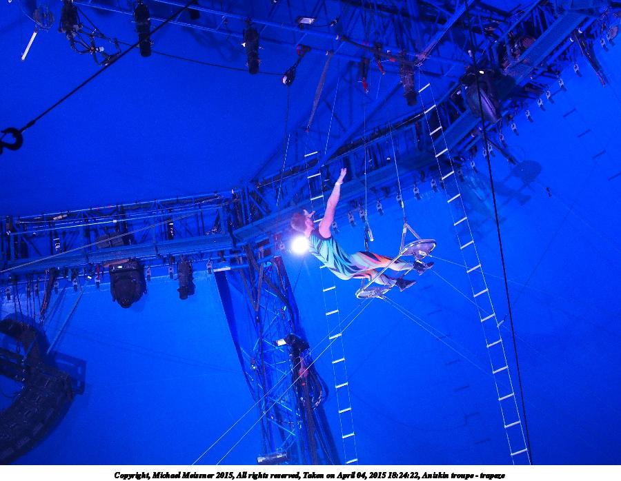 Picture #7: Aniskin troupe - trapeze #2 900x698, 123,315 bytes (121K), (html file) Copyright, Michael Meissner 2015, All rights reserved Olympus Stylus-1 camera f/2.8, ISO 500, 1/30 sec, 6.0mm, auto mode, vivid color, spot metering, IS Auto, noise filter low 35mm equivalent focal length 28.0mm Programs used: crop, raw therapee Taken by Michael Meissner on April 04, 2015 18:28:50 Last modified on April 23, 2015 at 00:12 |