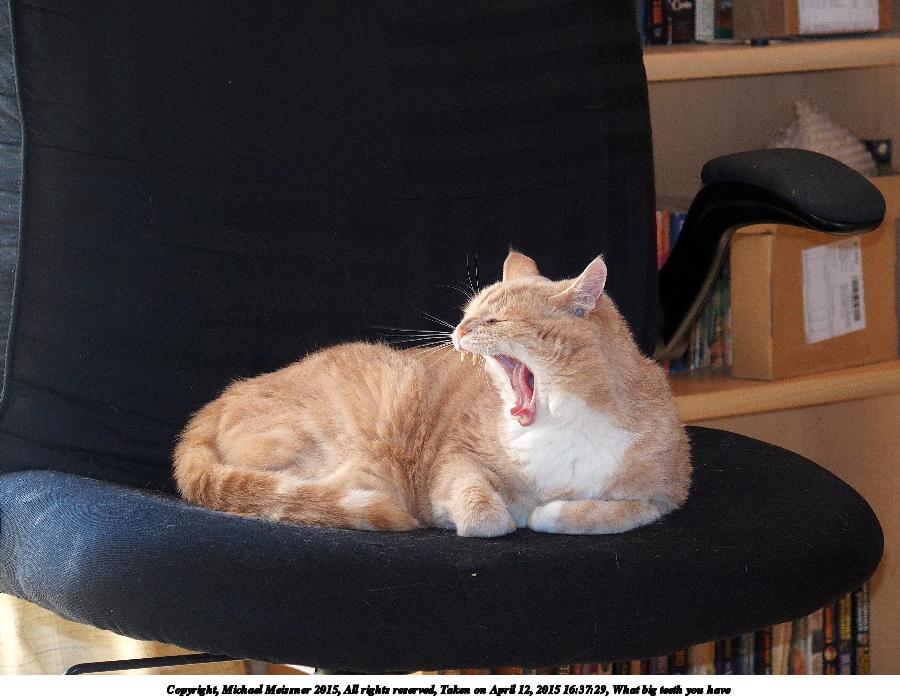 Picture #3: What big teeth you have 900x698, 102,682 bytes (101K), (html file) Copyright, Michael Meissner 2015, All rights reserved Olympus Stylus-1 camera f/2.8, ISO 400, flash, 1/100 sec, 28.8mm, auto mode, vivid color, spot metering, IS Auto, noise filter low 35mm equivalent focal length 135.0mm Programs used: crop, raw therapee Taken by Michael Meissner on April 12, 2015 16:37:29 Last modified on April 23, 2015 at 00:13 This picture is one of my favorites. |