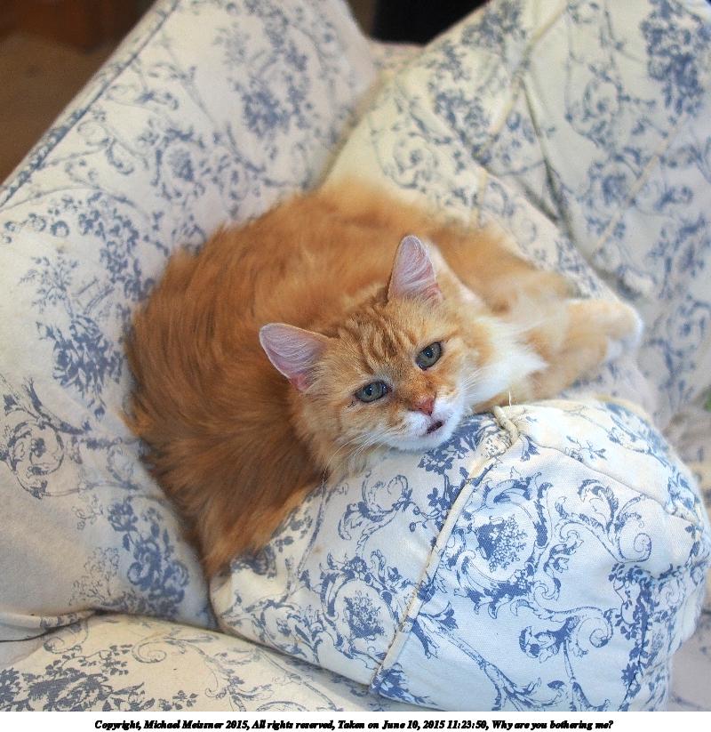 Picture #9: Why are you bothering me? 800x823, 133,084 bytes (130K), (html file) Copyright, Michael Meissner 2015, All rights reserved Olympus E-M5-I camera with Panasonic 20mm lens f/1.7, ISO 250, 1/60 sec, 20.0mm, auto mode, vivid color, matrix metering, IS1 (All Direction Shake IS), noise filter low 35mm equivalent focal length 40.0mm Programs used: crop, gimp, raw therapee Taken by Michael Meissner on June 10, 2015 11:23:50 Last modified on June 14, 2015 at 18:18 This picture is one of my favorites. |
