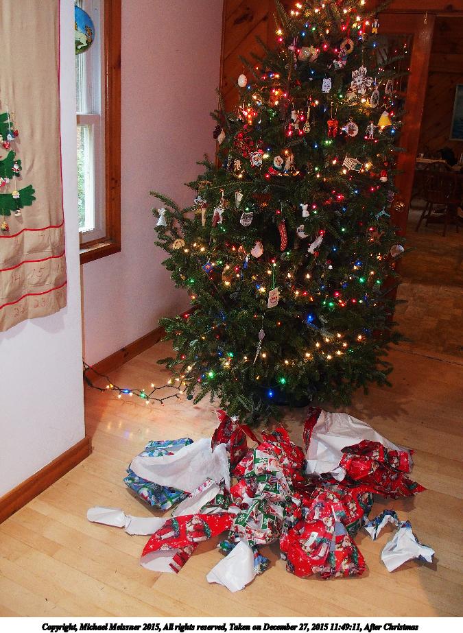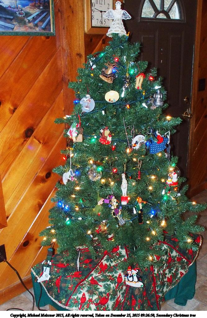 Picture #23: Secondary Christmas tree 667x1023, 208,620 bytes (204K), (html file) Copyright, Michael Meissner 2015, All rights reserved Olympus Stylus-1 camera f/5.6, ISO 800, flash, 1/30 sec, 6.0mm, aperture priority, vivid color, SHQ, matrix metering, IS Auto, noise reduction auto, noise filter low 35mm equivalent focal length 28.0mm Programs used: crop, gimp, raw therapee, rotate left Taken by Michael Meissner on December 25, 2015 09:26:50 Last modified on December 29, 2015 at 22:11 |