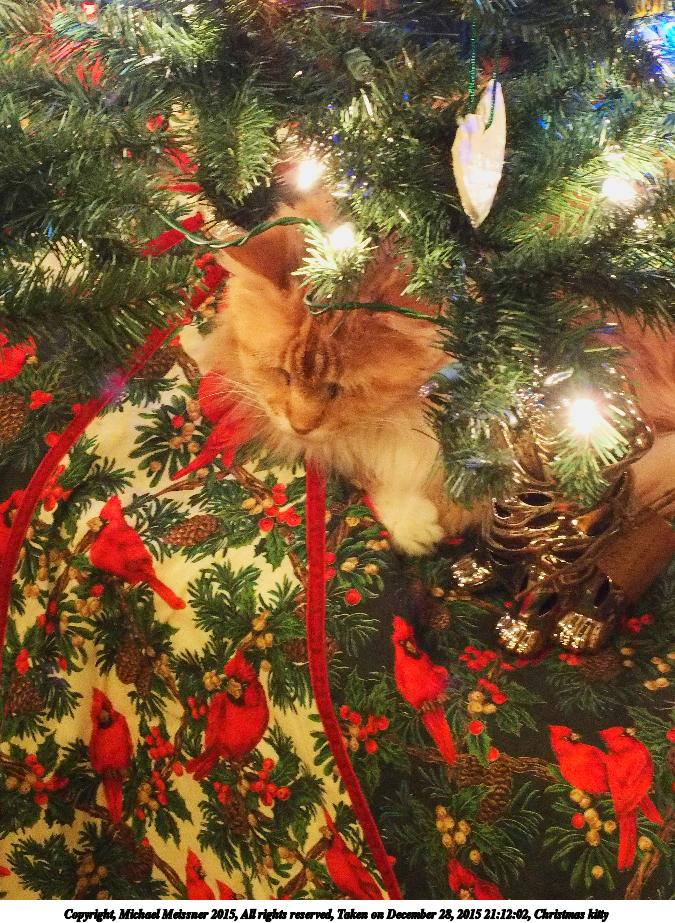 Picture #10: Christmas kitty 675x923, 187,656 bytes (184K), (html file) Copyright, Michael Meissner 2015, All rights reserved Olympus Stylus-1 camera f/5.6, ISO 1600, 1/6 sec, 24.0mm, aperture priority, vivid color, SHQ, matrix metering, IS Auto, noise reduction auto, noise filter low 35mm equivalent focal length 112.0mm Programs used: crop, raw therapee, rotate left Taken by Michael Meissner on December 28, 2015 21:12:02 Last modified on December 29, 2015 at 22:22 This picture is one of my favorites. |