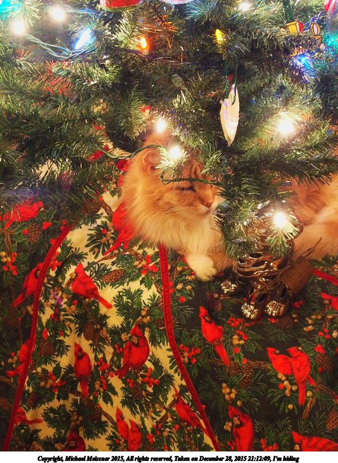 Picture #9: I'm hiding 675x923, 206,675 bytes (202K), (html file) Copyright, Michael Meissner 2015, All rights reserved Olympus Stylus-1 camera f/2.8, ISO 1250, 1/25 sec, 19.6mm, auto mode, vivid color, SHQ, matrix metering, IS Auto, noise reduction auto, noise filter low 35mm equivalent focal length 92.0mm Programs used: crop, raw therapee, rotate left Taken by Michael Meissner on December 28, 2015 21:12:09 Last modified on December 29, 2015 at 22:22 |