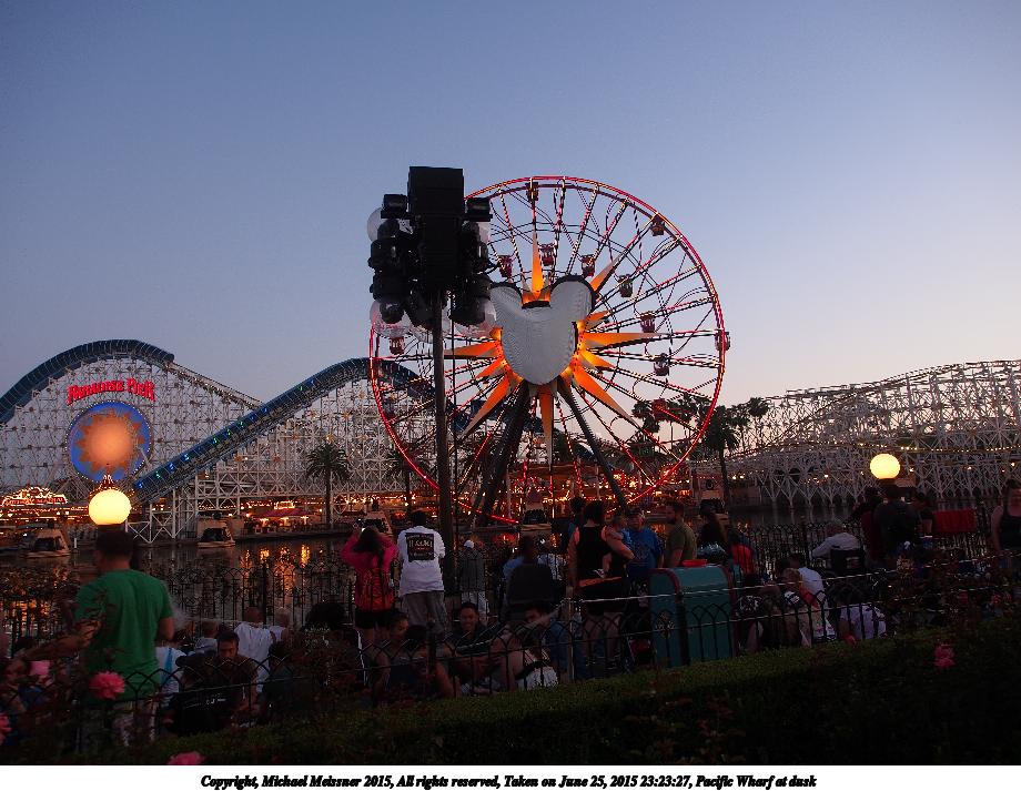 Picture #22: Pacific Wharf at dusk 920x713, 136,124 bytes (133K), (html file) Copyright, Michael Meissner 2015, All rights reserved Olympus E-M5-I camera with Olympus-m43 12-50mm f/3.5-6.3 lens f/3.5, ISO 200, 1/15 sec, 12.0mm, auto mode, vivid color, matrix metering, IS1 (All Direction Shake IS), noise filter low 35mm equivalent focal length 24.0mm Programs used: crop, raw therapee Taken by Michael Meissner on June 25, 2015 23:23:27 Last modified on August 26, 2015 at 08:39 |