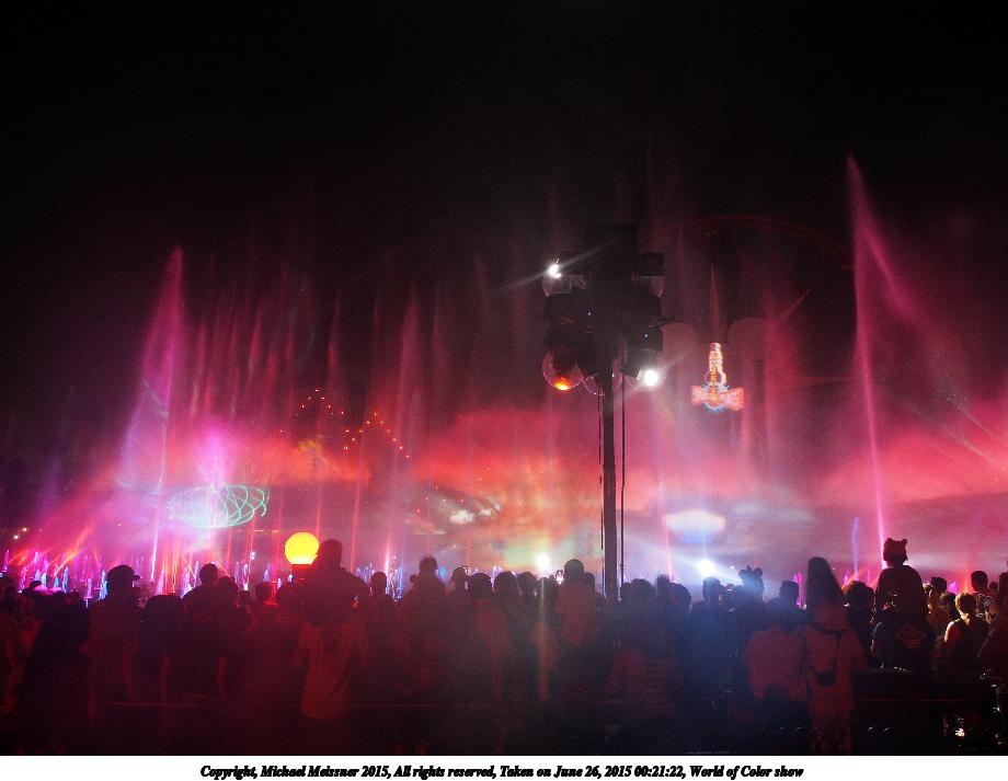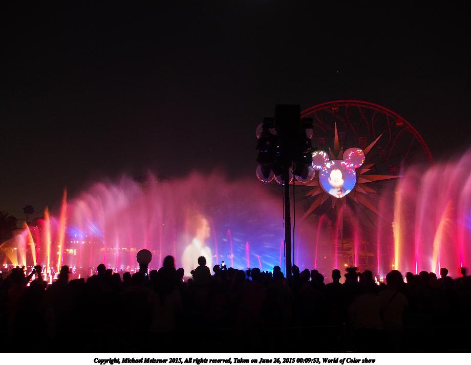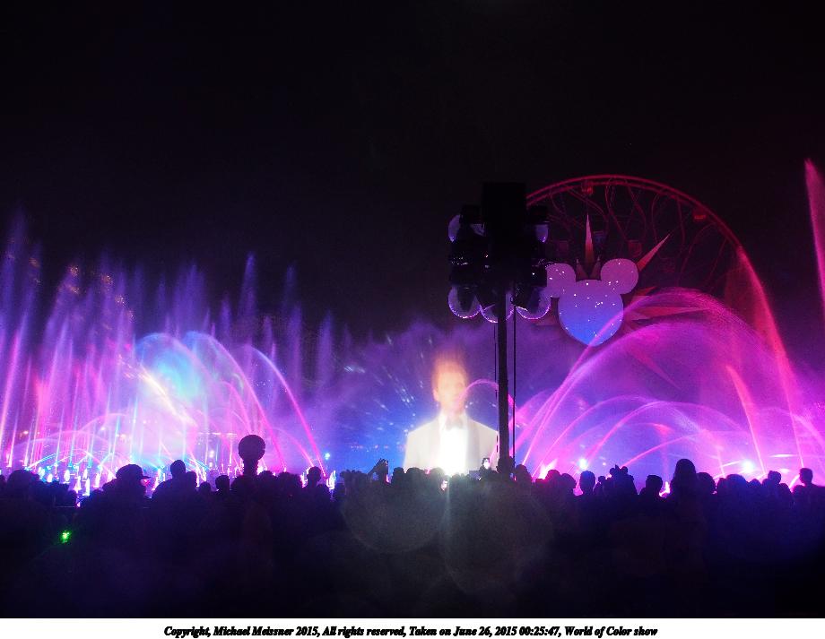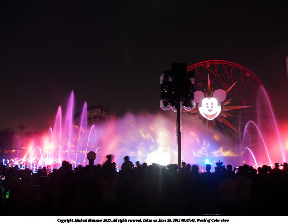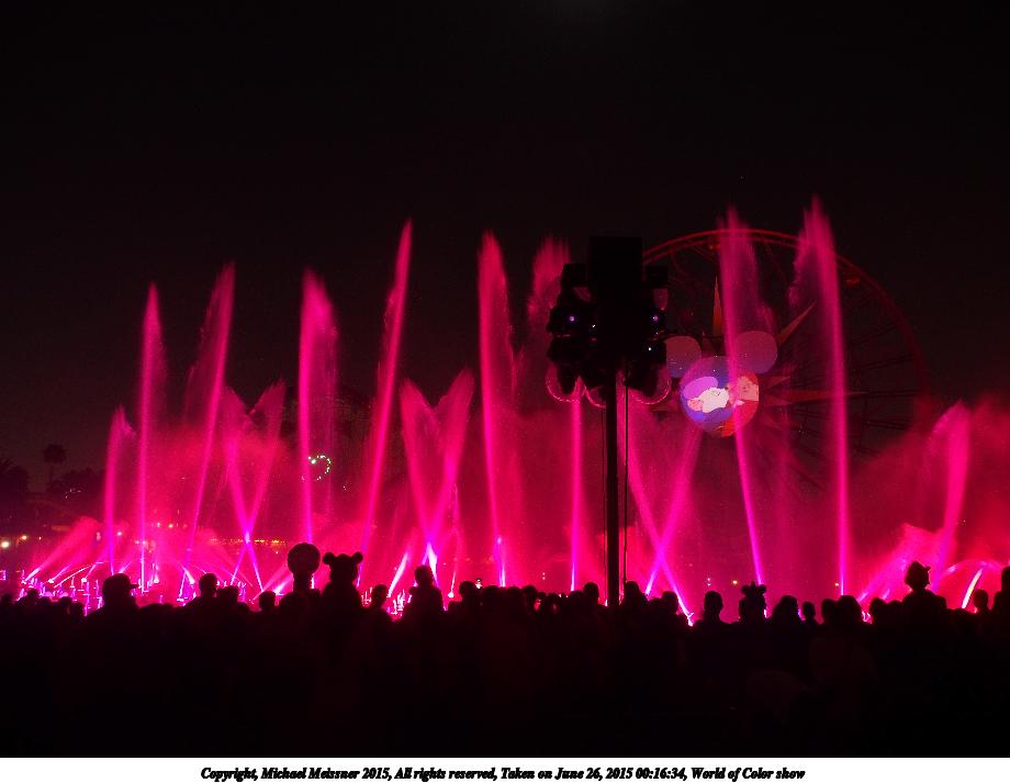 Picture #17: World of Color show #3 920x713, 77,291 bytes (76K), (html file) Copyright, Michael Meissner 2015, All rights reserved Olympus E-M5-I camera with Olympus-m43 12-50mm f/3.5-6.3 lens f/3.5, ISO 200, 1.3 sec, 12.0mm, auto mode, vivid color, matrix metering, IS1 (All Direction Shake IS), noise filter low 35mm equivalent focal length 24.0mm Programs used: crop, raw therapee Taken by Michael Meissner on June 26, 2015 00:08:09 Last modified on August 26, 2015 at 08:42 |