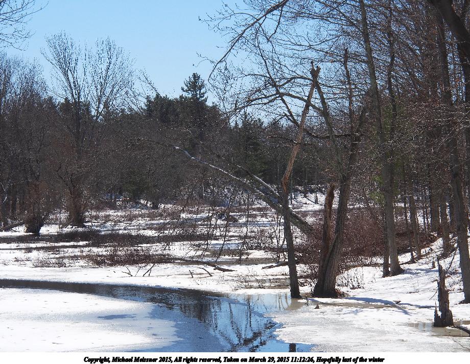 Picture #1: Still winter Thumb: 375x500, 35,488 bytes (35K) Small: 750x1023, 114,149 bytes (112K), (html file) Copyright, Michael Meissner 2015, All rights reserved Olympus E-5 camera with Olympus 14-54mm f/2.8-3.5 lens f/8.0, ISO 200, 1/500 sec, 23.0mm, auto mode, natural color, HQ, matrix metering, IS1 (All Direction Shake IS) 35mm equivalent focal length 46.0mm Programs used: crop, rotate left Taken by Michael Meissner on March 21, 2015 08:51:21 Last modified on March 29, 2015 at 23:45 The file originally appeared in http://www.the-meissners.org/2015-small-albums/2015-03/index.html. |