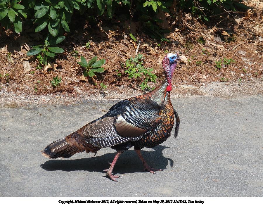 Picture #1: Tom turkey Thumb: 450x338, 87,291 bytes (86K) Small: 900x698, 270,455 bytes (265K), (html file) Copyright, Michael Meissner 2015, All rights reserved Olympus Stylus-1 camera f/3.5, ISO 100, 1/400 sec, 42.5mm, auto mode, vivid color, matrix metering, IS Auto, noise reduction auto, noise filter low 35mm equivalent focal length 200.0mm Programs used: crop, raw therapee Taken by Michael Meissner on May 10, 2015 11:18:05 Last modified on May 10, 2015 at 16:56 The file originally appeared in http://www.the-meissners.org/2015-small-albums/2015-05/index.html. |