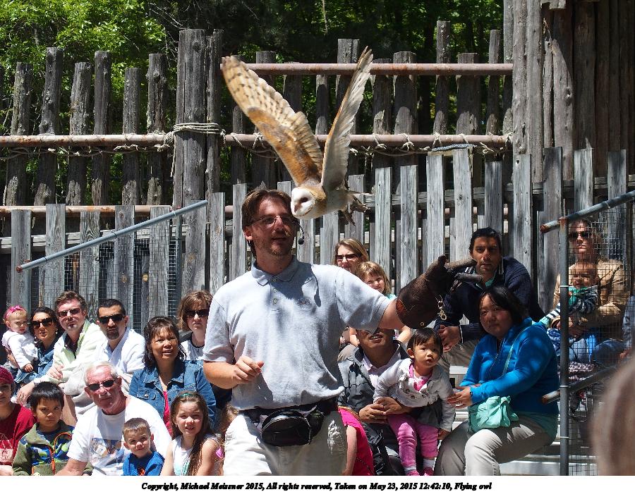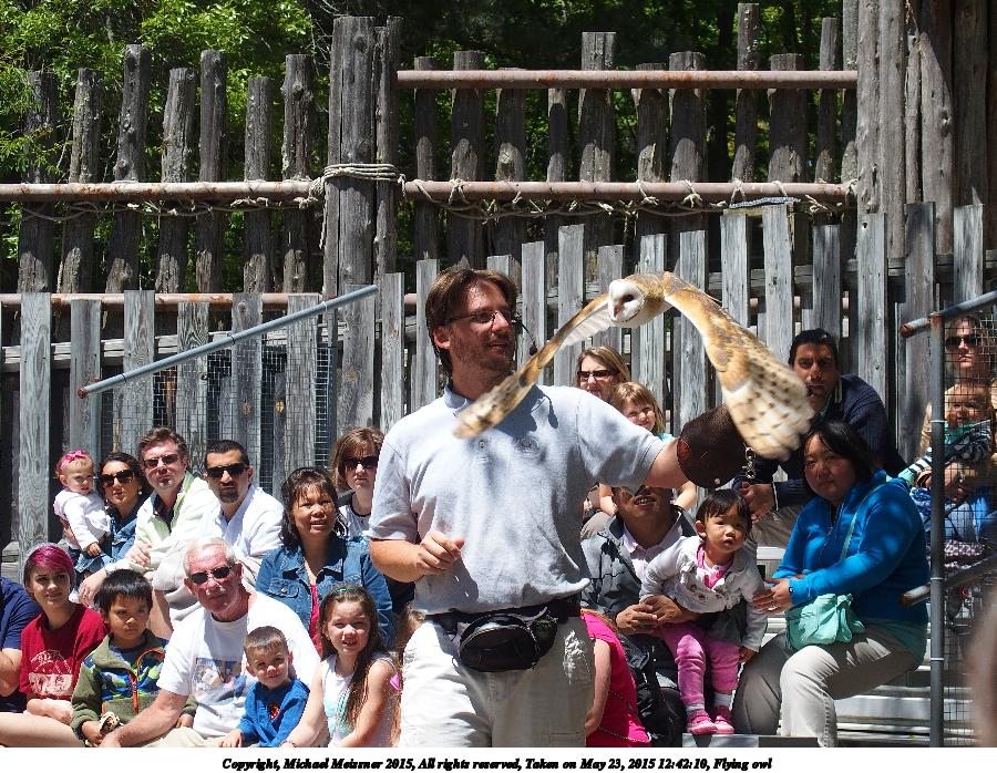 Picture #9: Flying owl #3 Thumb: 450x338, 71,091 bytes (70K) Small: 900x698, 197,797 bytes (194K), (html file) Copyright, Michael Meissner 2015, All rights reserved Olympus Stylus-1 camera f/3.5, ISO 100, 1/1000 sec, 21.2mm, auto mode, vivid color, SHQ, matrix metering, IS Auto, noise filter low 35mm equivalent focal length 100.0mm Programs used: crop, raw therapee Taken by Michael Meissner on May 23, 2015 12:42:10 Last modified on May 24, 2015 at 22:55 The file originally appeared in http://www.the-meissners.org/2015-small-albums/2015-stone-zoo/index.html. |