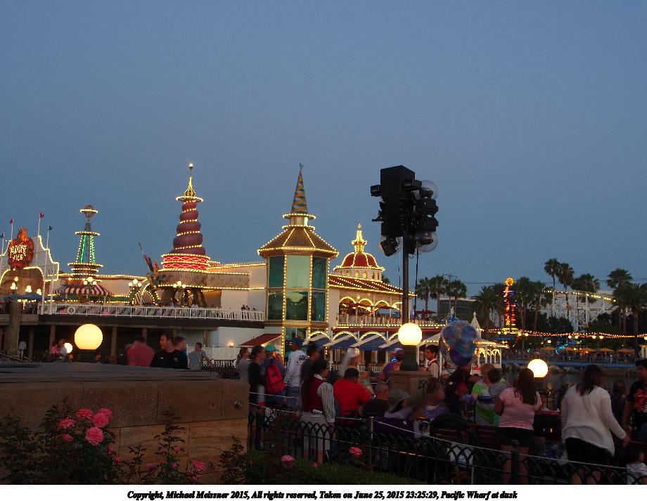 Picture #2: Pacific Wharf at dusk Thumb: 460x345, 44,508 bytes (44K) Small: 920x713, 106,954 bytes (105K), (html file) Copyright, Michael Meissner 2015, All rights reserved Olympus E-M5-I camera with Olympus-m43 12-50mm f/3.5-6.3 lens f/4.6, ISO 200, 1/6 sec, 20.0mm, auto mode, vivid color, matrix metering, IS1 (All Direction Shake IS), noise filter low 35mm equivalent focal length 40.0mm Programs used: crop, raw therapee Taken by Michael Meissner on June 25, 2015 23:25:29 Last modified on August 26, 2015 at 08:39 The file originally appeared in http://www.the-meissners.org/2015-small-albums/2015-disney-dca/index.html. |