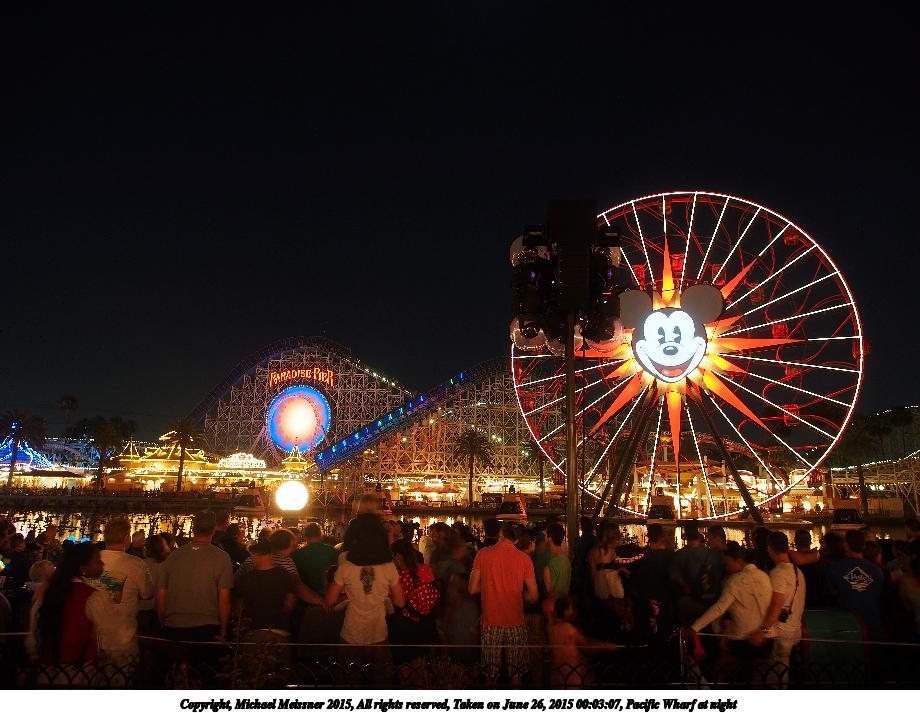 Picture #3: Pacific Wharf at night Thumb: 460x345, 49,732 bytes (49K) Small: 920x713, 122,298 bytes (120K), (html file) Copyright, Michael Meissner 2015, All rights reserved Olympus E-M5-I camera with Olympus-m43 12-50mm f/3.5-6.3 lens f/3.5, ISO 200, 1 sec, 12.0mm, auto mode, vivid color, matrix metering, IS1 (All Direction Shake IS), noise filter low 35mm equivalent focal length 24.0mm Programs used: crop, raw therapee Taken by Michael Meissner on June 26, 2015 00:03:07 Last modified on August 26, 2015 at 08:40 The file originally appeared in http://www.the-meissners.org/2015-small-albums/2015-disney-dca/index.html. |