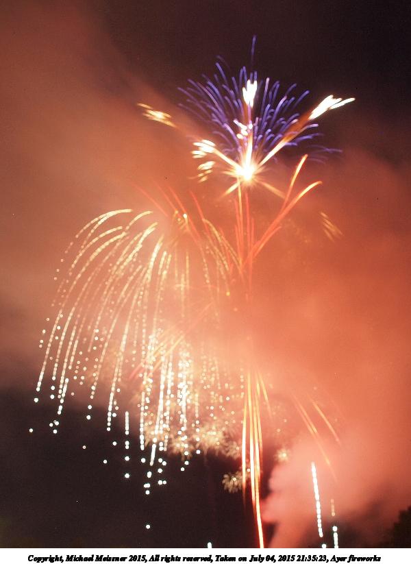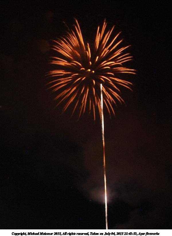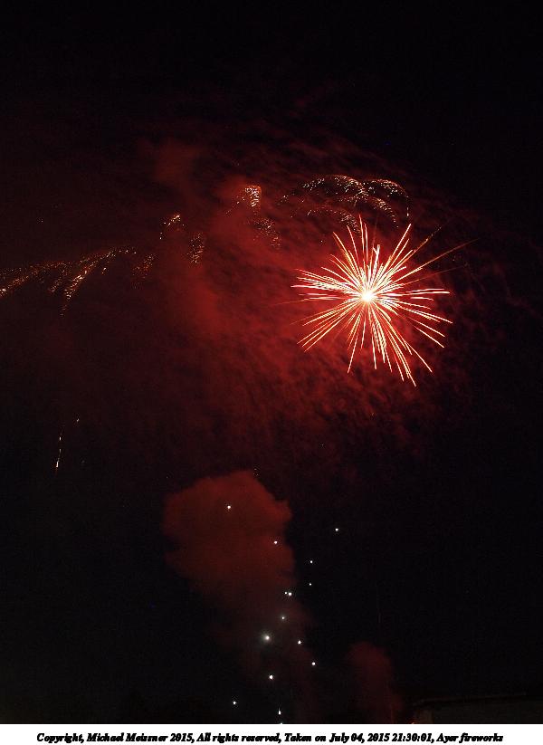 Picture #2: Ayer fireworks #2 Thumb: 360x480, 30,673 bytes (30K) Small: 600x823, 54,863 bytes (54K), (html file) Copyright, Michael Meissner 2015, All rights reserved Olympus E-5 camera with Olympus 14-54mm f/2.8-3.5 lens f/5.6, ISO 200, 1.8 sec, 14.0mm, bulb mode, natural color, HQ, matrix metering, manual focus, noise filter low 35mm equivalent focal length 28.0mm Extra equipment used: Tripod, cable release Programs used: crop, gimp Taken by Michael Meissner on July 04, 2015 21:30:01 Last modified on July 09, 2015 at 23:46 The file originally appeared in http://www.the-meissners.org/2015-small-albums/2015-07/index.html. |