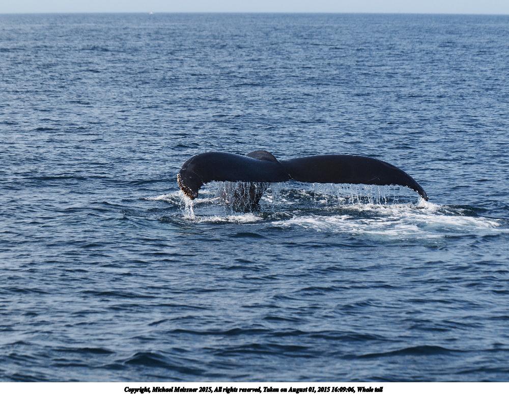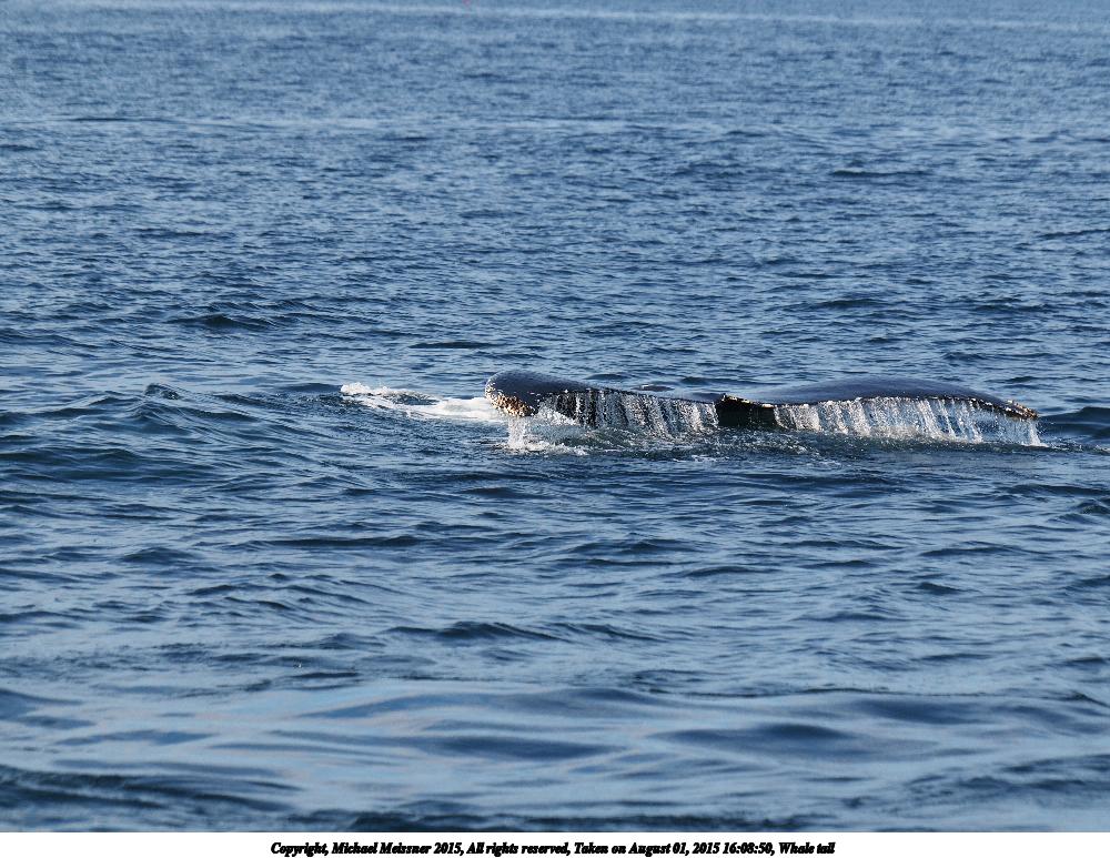 Picture #4: Whale tail Thumb: 460x345, 55,883 bytes (55K) Small: 920x713, 190,298 bytes (186K), (html file) Copyright, Michael Meissner 2015, All rights reserved Olympus E-M5-I camera with Olympus-m43 14-150mm-II f/4.0-5.6 lens f/9.0, ISO 200, 1/640 sec, 150.0mm, auto mode, vivid color, center weight metering, digital zoom x2, IS1 (All Direction Shake IS), noise filter low 35mm equivalent focal length 601.0mm, digital zoom x2 Programs used: crop, raw therapee Taken by Michael Meissner on August 01, 2015 15:24:12 Last modified on September 05, 2015 at 15:27 The file originally appeared in http://www.the-meissners.org/2015-small-albums/2015-whale-watch/index.html. |