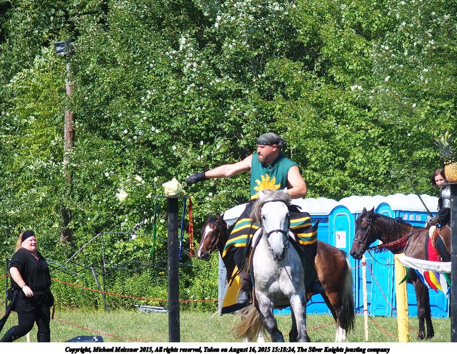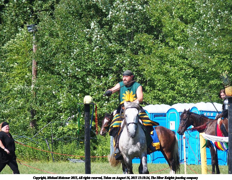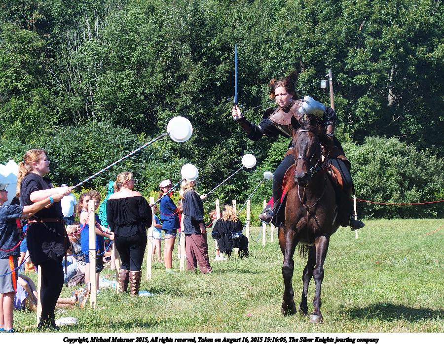 Picture #3: The Silver Knights jousting company #3 Thumb: 450x338, 83,217 bytes (82K) Small: 900x698, 303,732 bytes (297K), (html file) Copyright, Michael Meissner 2015, All rights reserved Olympus Stylus-1 camera f/3.5, ISO 100, 1/800 sec, 51.4mm, auto mode, vivid color, SHQ, matrix metering, IS Auto, noise filter low 35mm equivalent focal length 242.0mm Programs used: crop, raw therapee Taken by Michael Meissner on August 16, 2015 15:18:24 Last modified on January 03, 2016 at 16:52 The file originally appeared in http://www.the-meissners.org/2015-small-albums/2015-silver-kingdom-ren/index.html. |