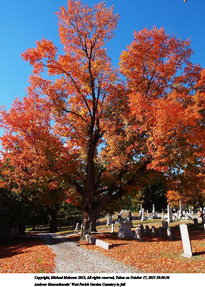 Picture #13: Andover Massachusetts' West Parish Garden Cemetery in fall #2 Thumb: 345x460, 71,873 bytes (71K) Small: 690x966, 286,922 bytes (281K), (html file) Copyright, Michael Meissner 2015, All rights reserved Olympus E-M5-I camera with Olympus-m43 12-40mm f/2.8 lens f/6.3, ISO 200, 1/320 sec, 12.0mm, auto mode, vivid color, matrix metering, IS1 (All Direction Shake IS), noise filter low 35mm equivalent focal length 24.0mm Programs used: crop, raw therapee, rotate left Taken by Michael Meissner on October 17, 2015 10:56:36 Last modified on October 17, 2015 at 16:48 The file originally appeared in http://www.the-meissners.org/2015-small-albums/2015-10/index.html. |