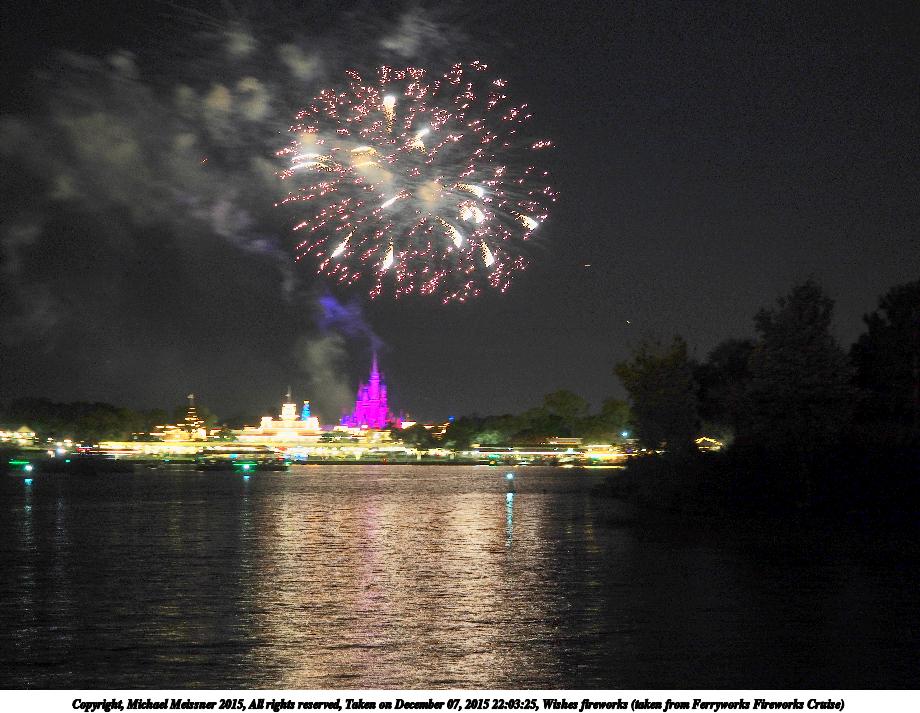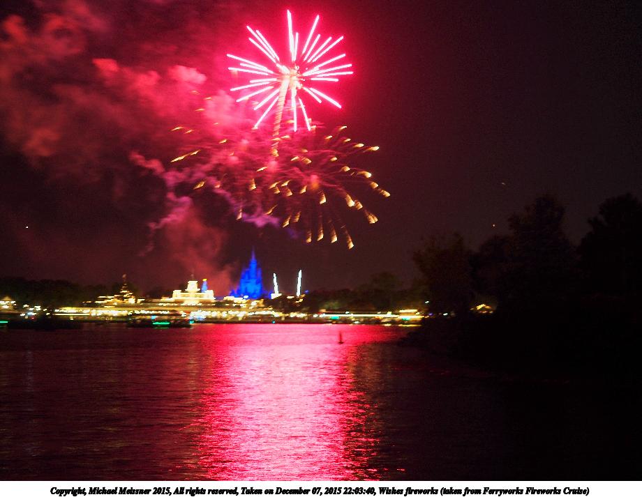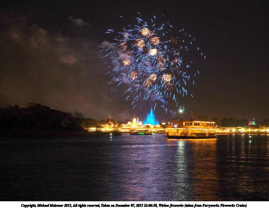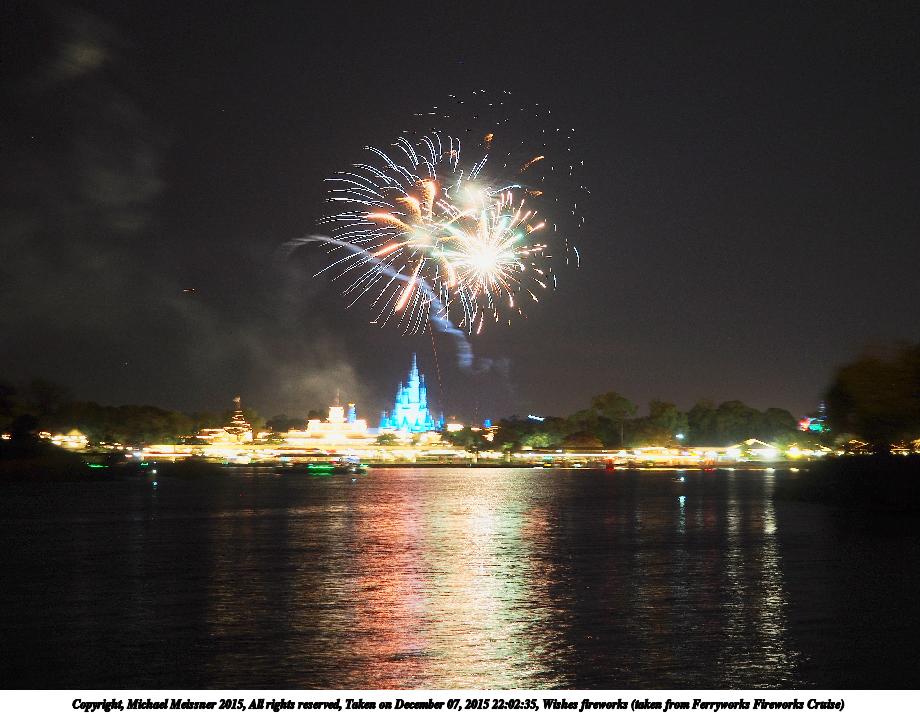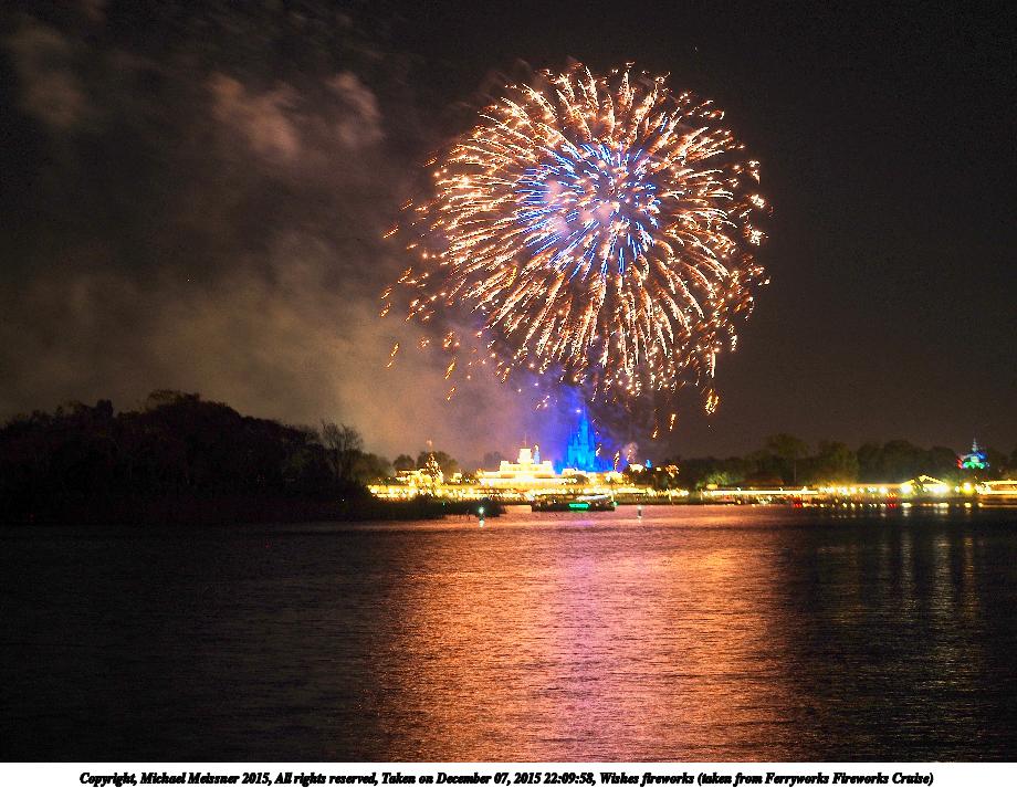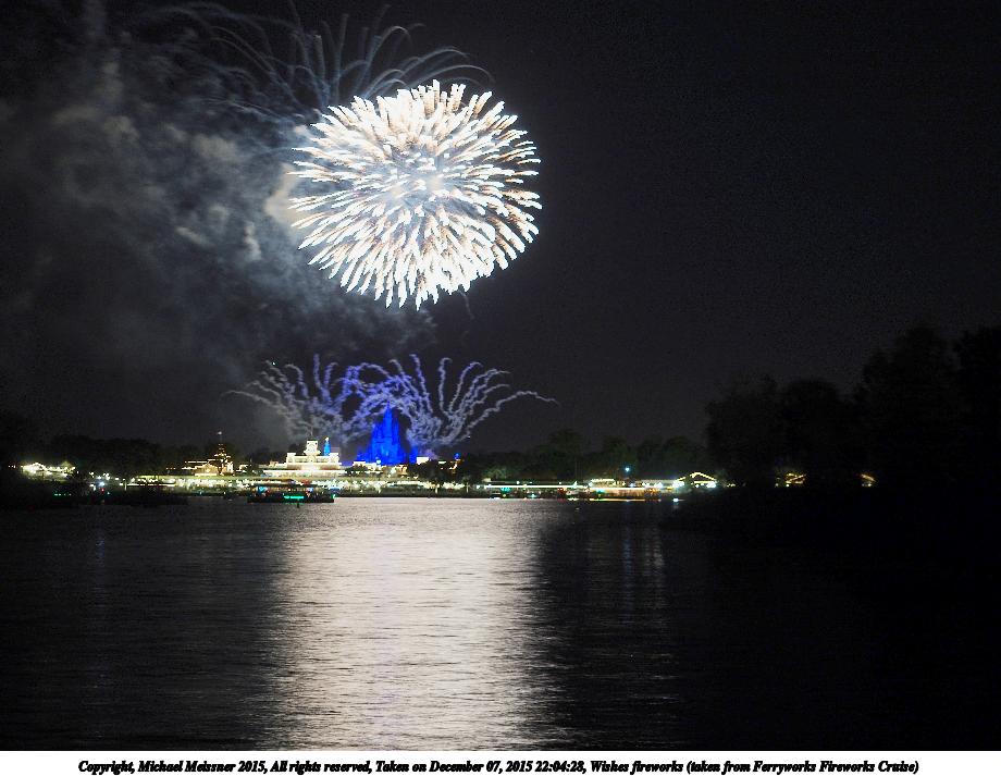 Picture #19: Wishes fireworks (taken from Ferryworks Fireworks Cruise) #6 Thumb: 460x345, 38,850 bytes (38K) Small: 920x713, 129,808 bytes (127K), (html file) Copyright, Michael Meissner 2015, All rights reserved Olympus E-M5-I camera with Olympus-m43 12-40mm f/2.8 lens f/2.8, ISO 200, 1/2 sec, 34.0mm, auto mode, vivid color, matrix metering, IS1 (All Direction Shake IS), noise filter low 35mm equivalent focal length 68.0mm Programs used: crop, raw therapee Taken by Michael Meissner on December 07, 2015 22:09:02 Last modified on December 17, 2015 at 09:49 The file originally appeared in http://www.the-meissners.org/2015-small-albums/2015-wdw-magic-kingdom/index.html. |