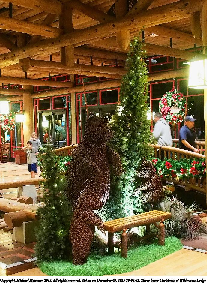 Picture #34: Three bears Christmas at Wilderness Lodge #2 690x943, 212,868 bytes (208K), (html file) Copyright, Michael Meissner 2015, All rights reserved Olympus E-M5-I camera with Olympus-m43 12-40mm f/2.8 lens f/2.8, ISO 3200, 1/25 sec, 12.0mm, auto mode, vivid color, matrix metering, digital zoom x2, IS1 (All Direction Shake IS), noise filter low 35mm equivalent focal length 48.0mm, digital zoom x2 Programs used: crop, raw therapee, rotate left Taken by Michael Meissner on December 03, 2015 20:05:31 Last modified on December 13, 2015 at 23:42 |
