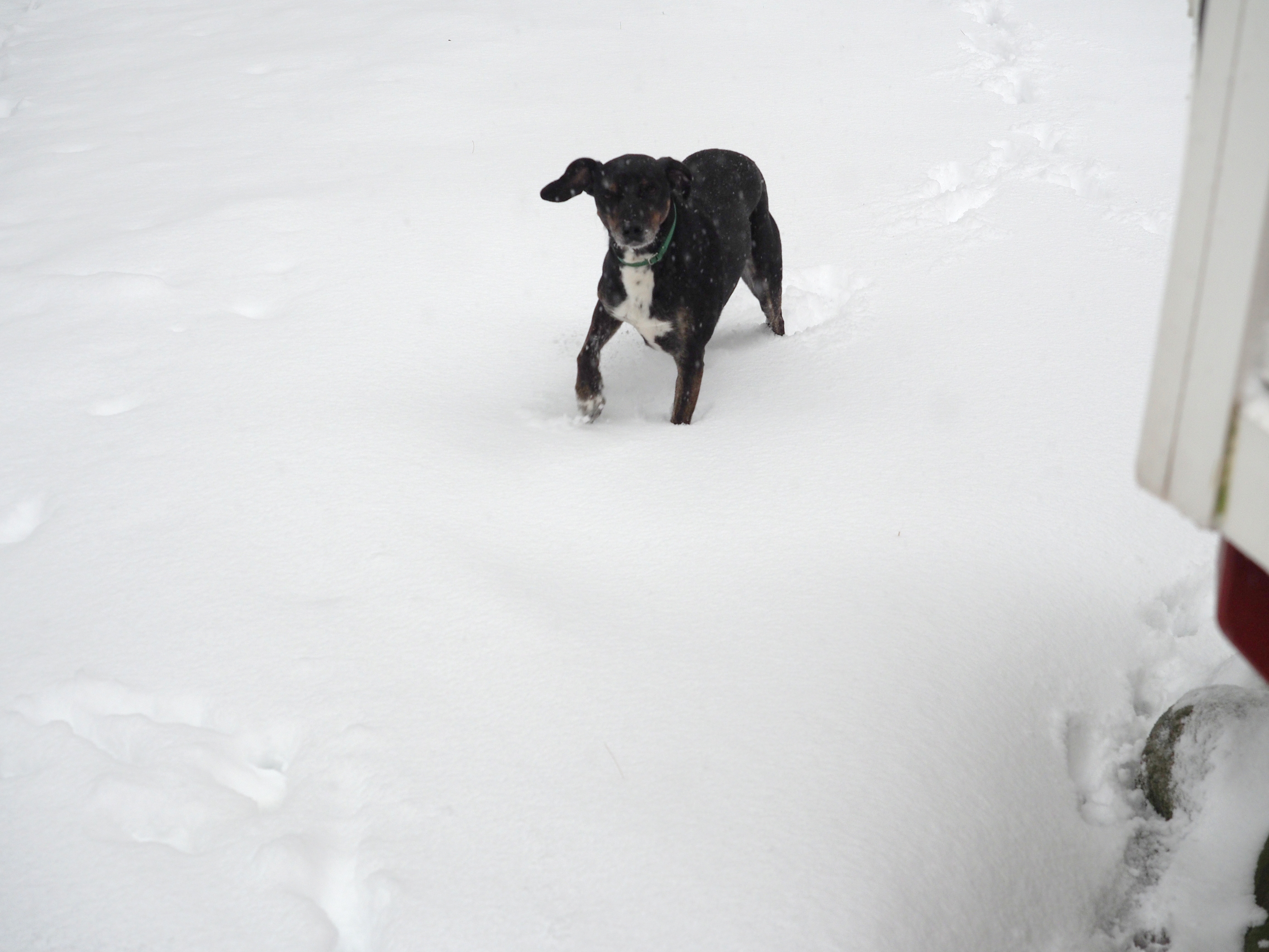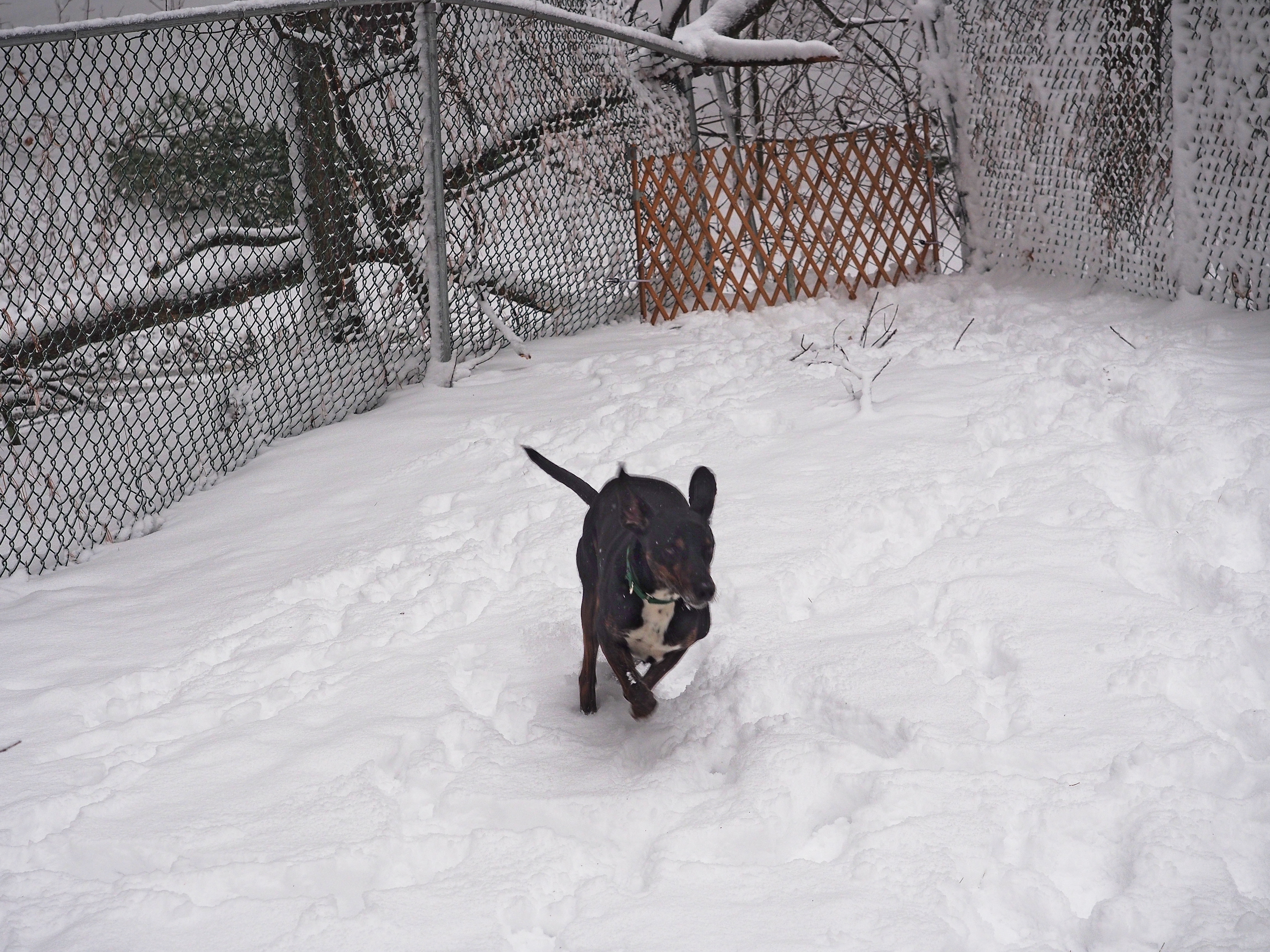 Picture #95: Sophie in the snow Small: 1000x690, 95,599 bytes (94K), (html file) Large: 3000x2000, 4,085,034 bytes (3.9M), (html file) Copyright, Michael Meissner 2016, All rights reserved Olympus E-M5-I camera with Olympus-m43 12-40mm f/2.8 lens f/4.5, ISO 200, 1/250 sec, 40.0mm, auto mode, vivid color, matrix metering, IS1 (All Direction Shake IS), noise filter low 35mm equivalent focal length 80.0mm Programs used: crop, gimp Taken by Michael Meissner on February 05, 2016 14:05:26 Last modified on February 05, 2016 at 14:44 This picture is one of my favorites. |