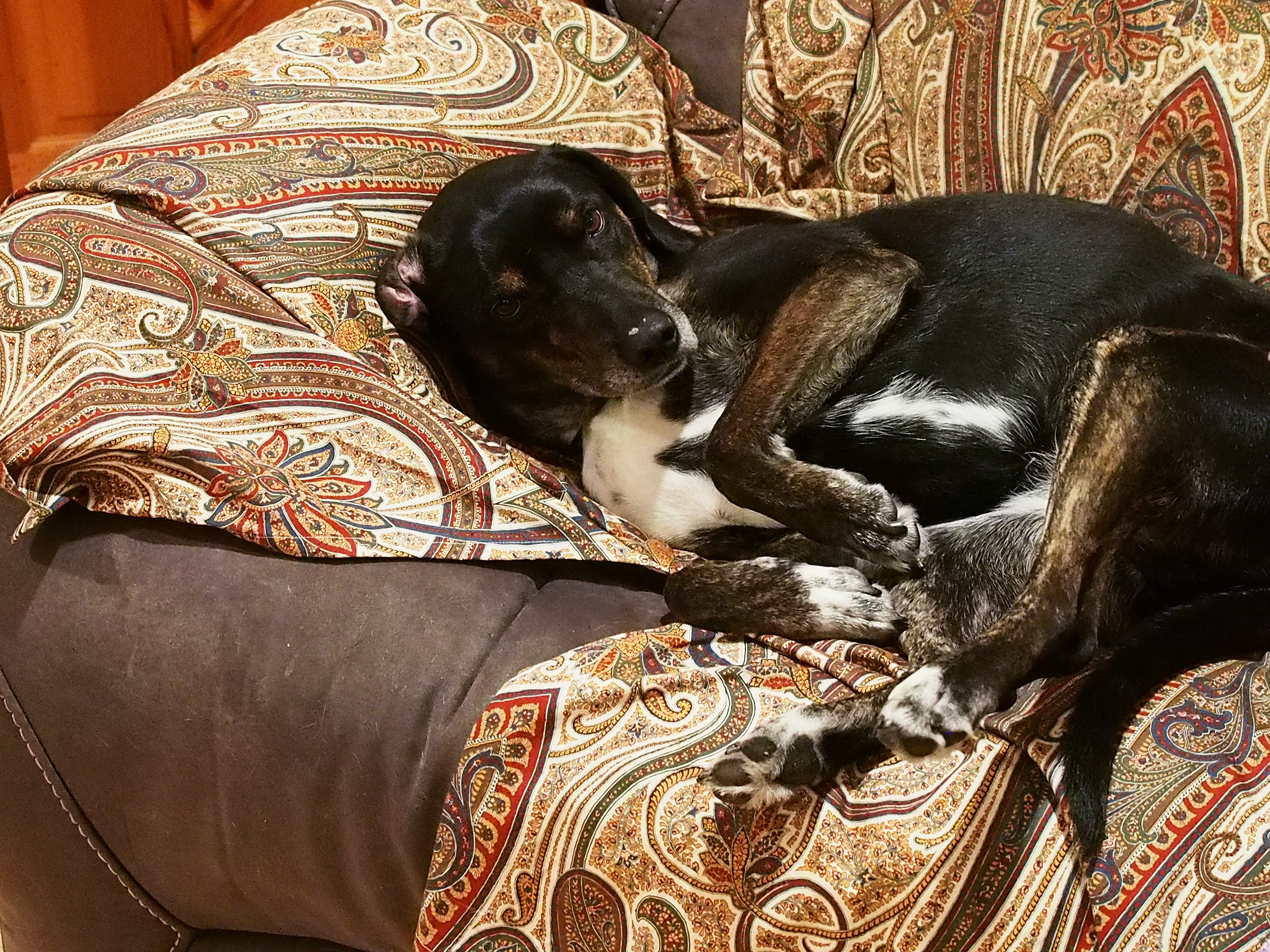 Picture #41: Belly rub achieved Small: 920x713, 221,426 bytes (217K), (html file) Large: 4600x3450, 4,837,850 bytes (4.6M), (html file) Copyright, Michael Meissner 2016, All rights reserved Olympus E-M5-I camera with Olympus-m43 12-40mm f/2.8 lens f/2.8, ISO 3200, 1/50 sec, 21.0mm, auto mode, vivid color, matrix metering, digital zoom x2, auto + manual focus, IS1 (All Direction Shake IS), noise filter low 35mm equivalent focal length 84.0mm, digital zoom x2 Programs used: crop, raw therapee Taken by Michael Meissner on February 07, 2016 01:26:54 Last modified on February 07, 2016 at 17:46 |