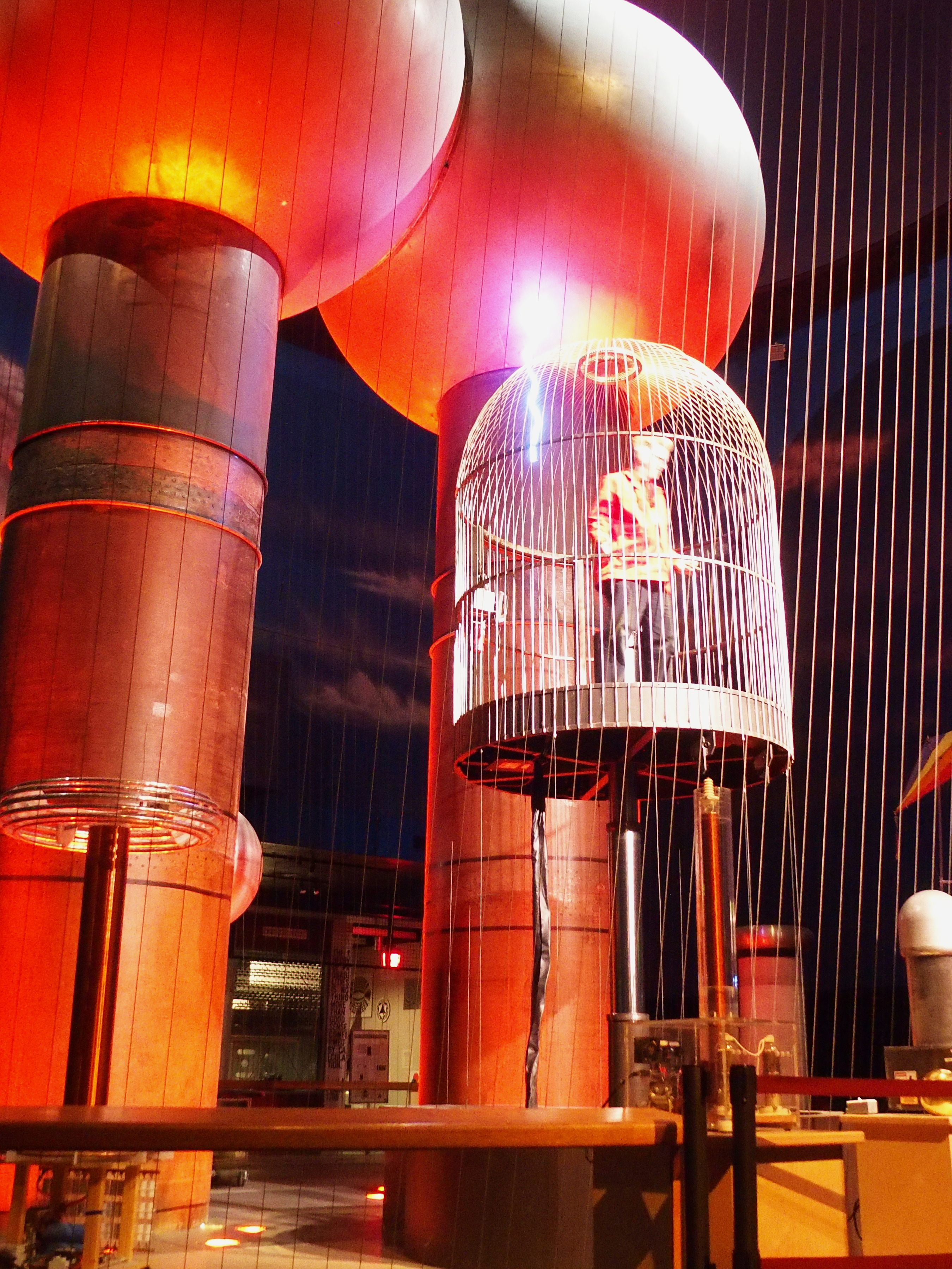 Picture #16: Theater of electricity finale Small: 900x698, 128,090 bytes (126K), (html file) Large: 3600x2700, 2,798,825 bytes (2.7M), (html file) Copyright, Michael Meissner 2016, All rights reserved Olympus Stylus-1 camera f/2.8, ISO 1600, 1/2 sec, 6.0mm, auto mode, vivid color, SHQ, Unknown (258), IS Auto, noise filter low 35mm equivalent focal length 28.0mm Programs used: crop, raw therapee Taken by Michael Meissner on February 28, 2016 16:25:07 Last modified on February 28, 2016 at 21:00 |