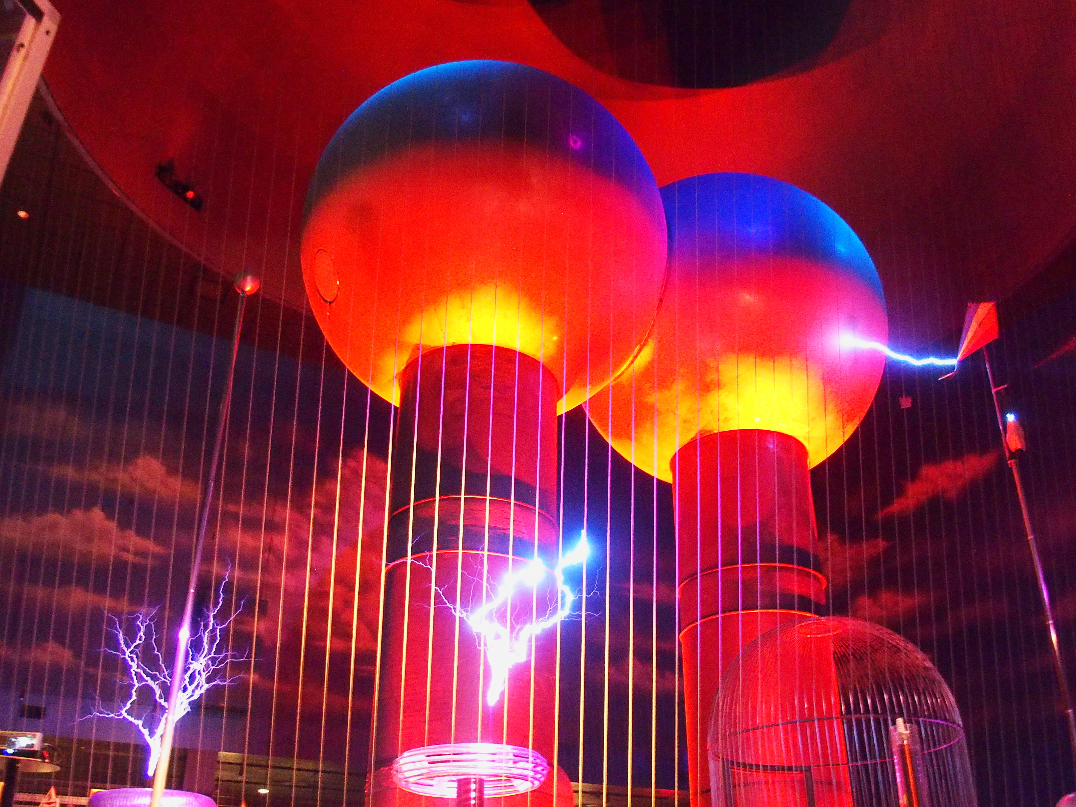 Picture #19: Tesla coils #2 Small: 900x698, 157,613 bytes (154K), (html file) Large: 3600x2700, 2,987,483 bytes (2.8M), (html file) Copyright, Michael Meissner 2016, All rights reserved Olympus Stylus-1 camera f/2.8, ISO 1600, 1/3 sec, 6.7mm, auto mode, vivid color, SHQ, Unknown (258), IS Auto, noise filter low 35mm equivalent focal length 32.0mm Programs used: crop, raw therapee Taken by Michael Meissner on February 28, 2016 16:17:12 Last modified on February 28, 2016 at 20:59 |
