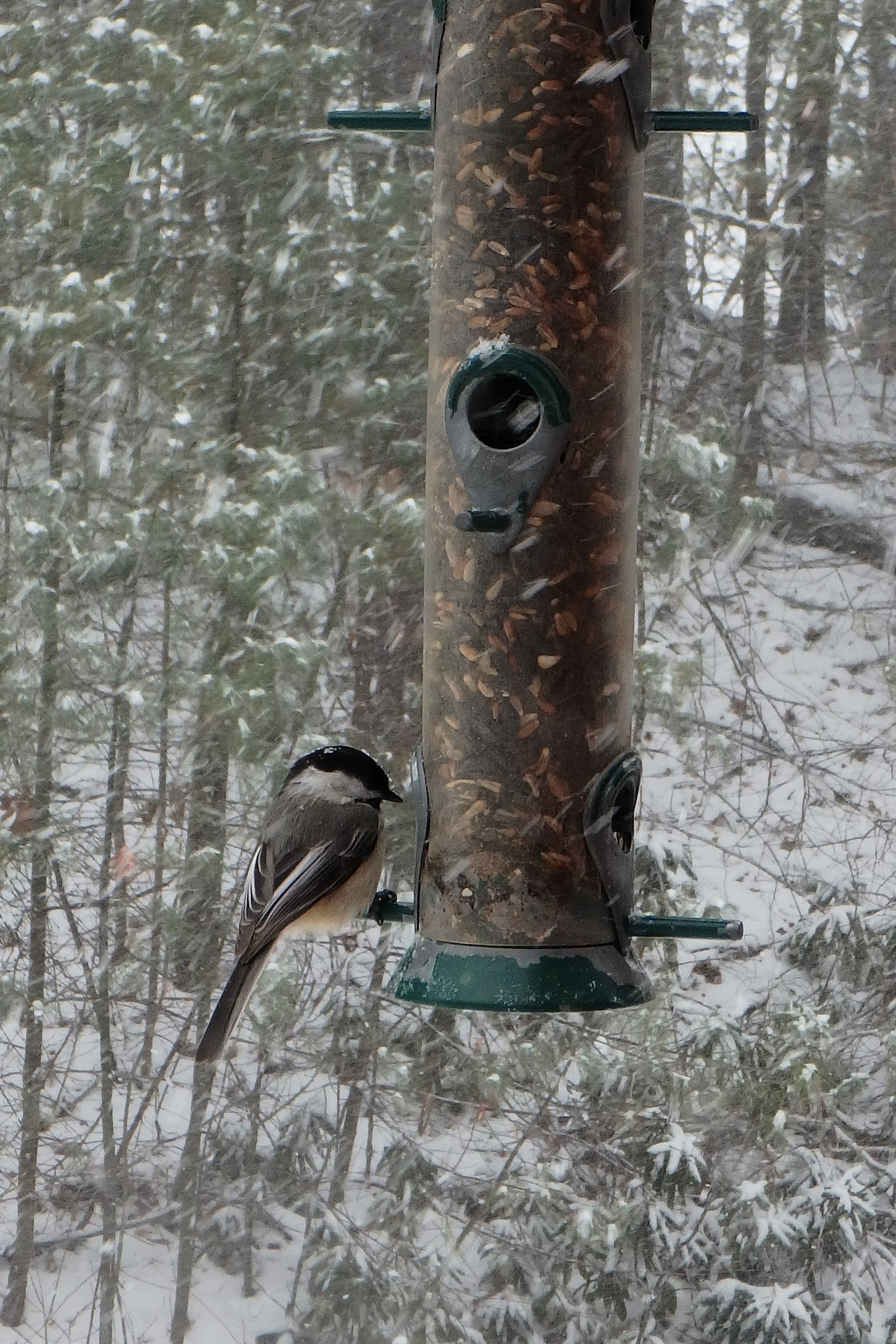 Picture #1: Chickadee at the feeder Thumb: 320x480, 61,678 bytes (61K) Small: 533x823, 154,616 bytes (151K), (html file) Large: 1600x2400, 1,442,208 bytes (1.4M), (html file) Olympus TG-860 camera f/5.2, ISO 200, 1/80 sec, 9.4mm, auto mode, natural color, SQ, matrix metering 35mm equivalent focal length 53.0mm Programs used: crop, raw therapee, rotate left Taken by Michael Meissner on April 04, 2016 10:01:41 Last modified on April 04, 2016 at 16:12 |