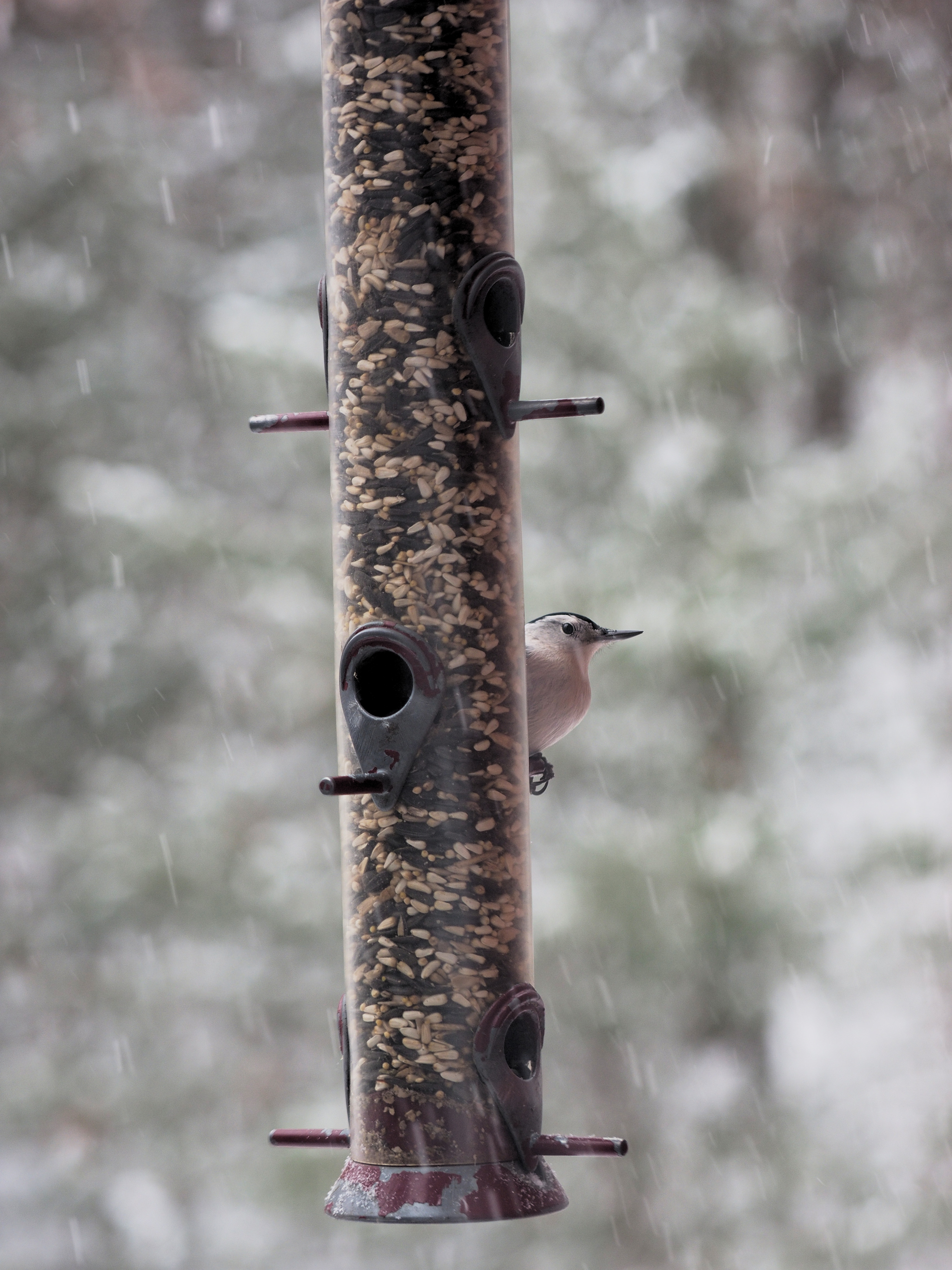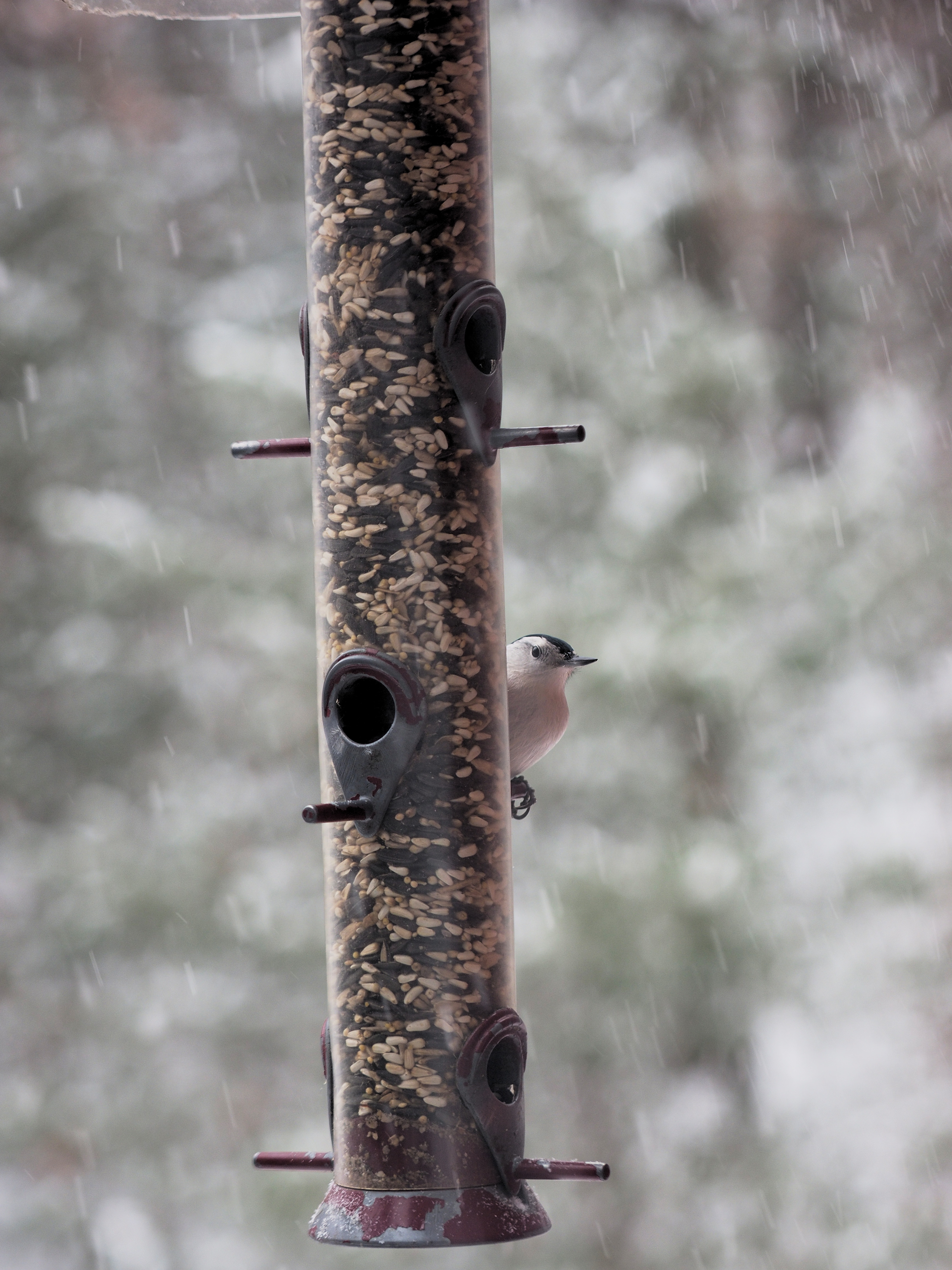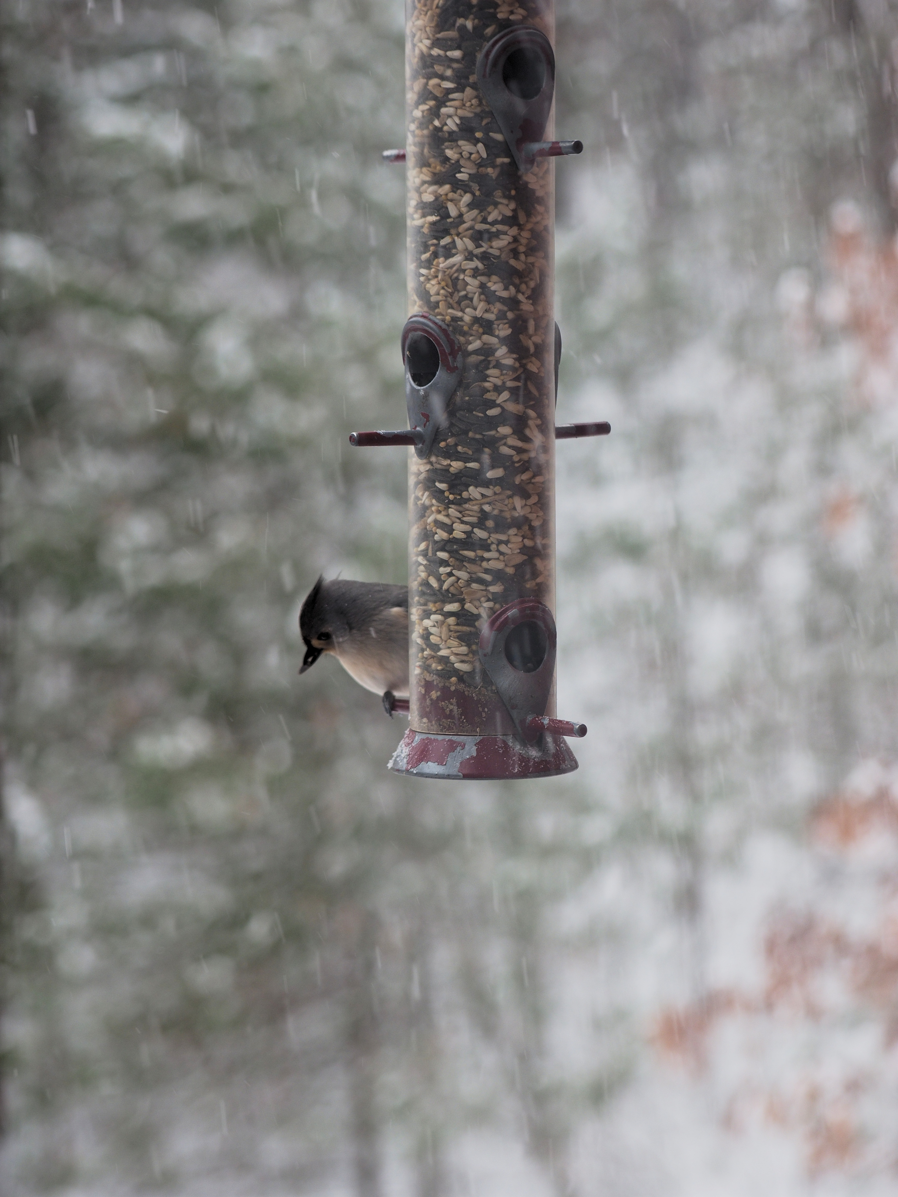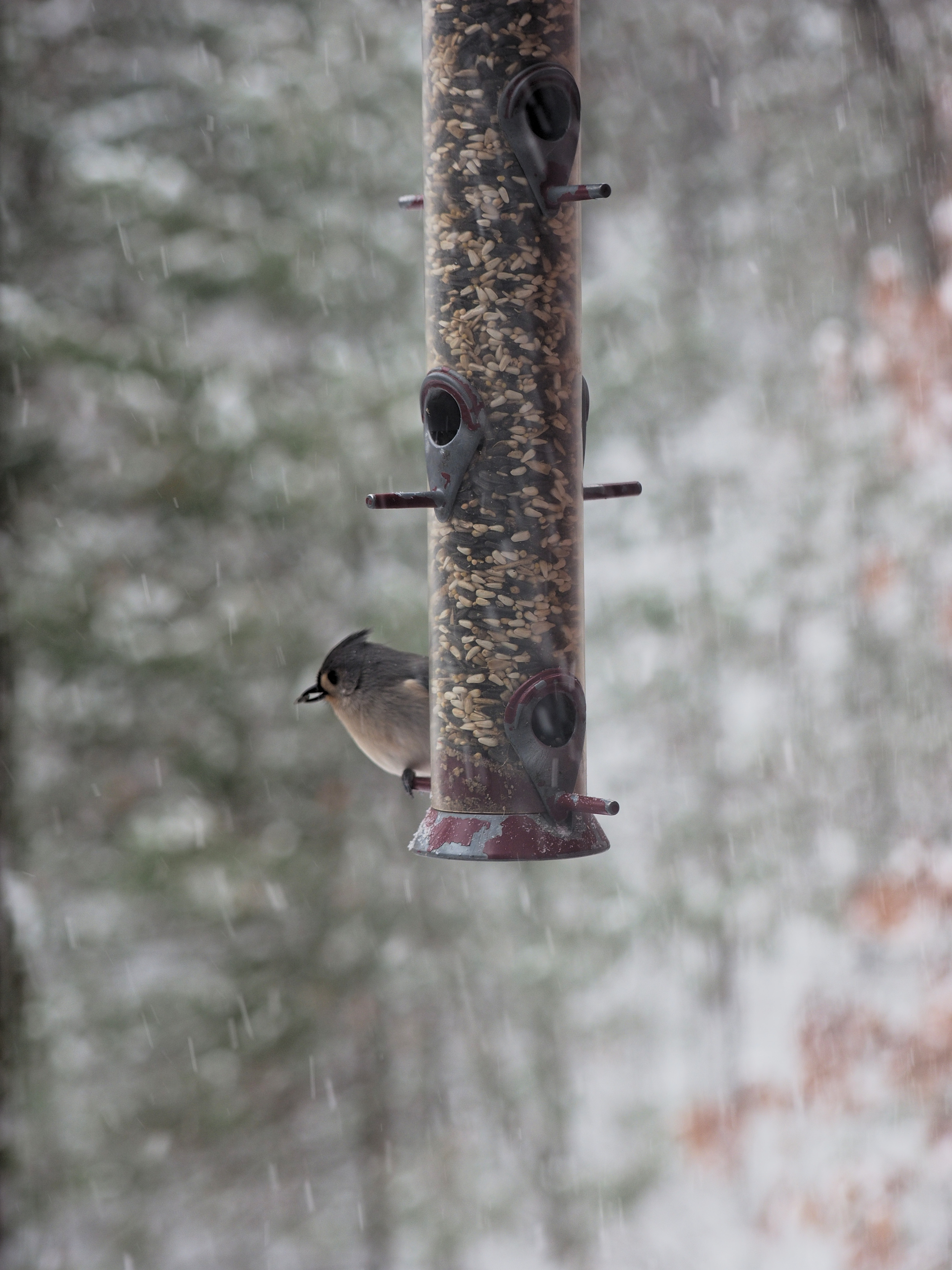 Picture #1: Setup for taking bird feeder pictures Small: 690x942, 86,677 bytes (85K), (html file) Large: 3450x4600, 2,582,158 bytes (2.5M), (html file) Copyright, Michael Meissner 2016, All rights reserved Olympus E-M1-I camera with Olympus 50-200mm lens f/3.5, ISO 200, 1/200 sec, 50.0mm, auto mode, vivid color, SHQ, matrix metering, auto + manual focus, IS Auto, noise filter low, anti-shock 35mm equivalent focal length 100.0mm Programs used: crop, raw therapee, rotate left Taken by Michael Meissner on December 17, 2016 11:51:45 Last modified on December 17, 2016 at 13:11 |