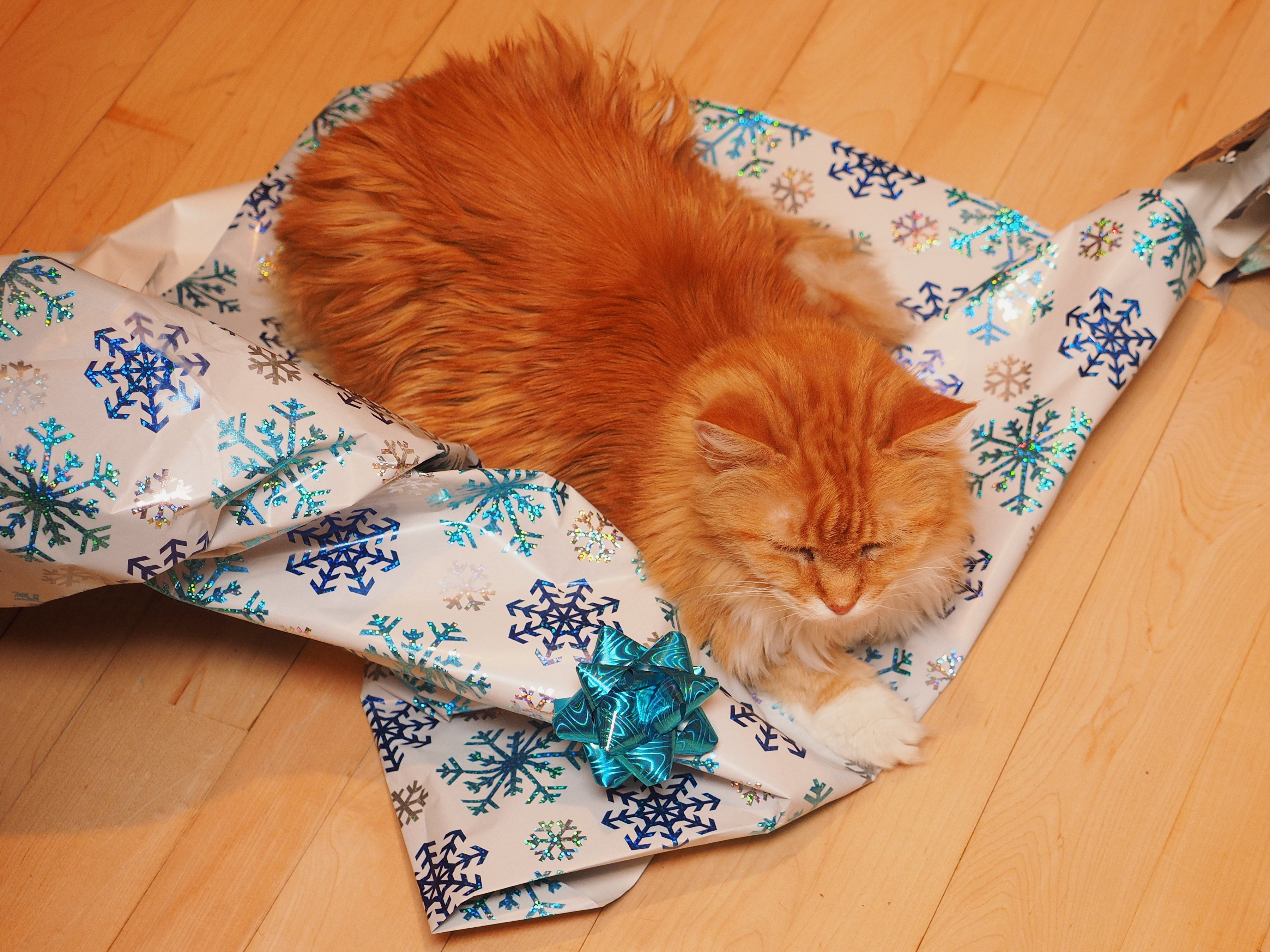 Picture #4: Cat christmas present Small: 900x697, 219,508 bytes (215K), (html file) Large: 4500x3375, 5,305,873 bytes (5.1M), (html file) Copyright, Michael Meissner 2016, All rights reserved Panasonic G85 camera with Panasonic 12-60mm f/3.5-5.6 lens f/4.9, ISO 250, flash, 1/60 sec, 30.0mm, auto mode, auto wb (5700), matrix metering 35mm equivalent focal length 60.0mm Programs used: crop, raw therapee Taken by Michael Meissner on December 24, 2016 18:14:09 Last modified on December 26, 2016 at 10:57 |