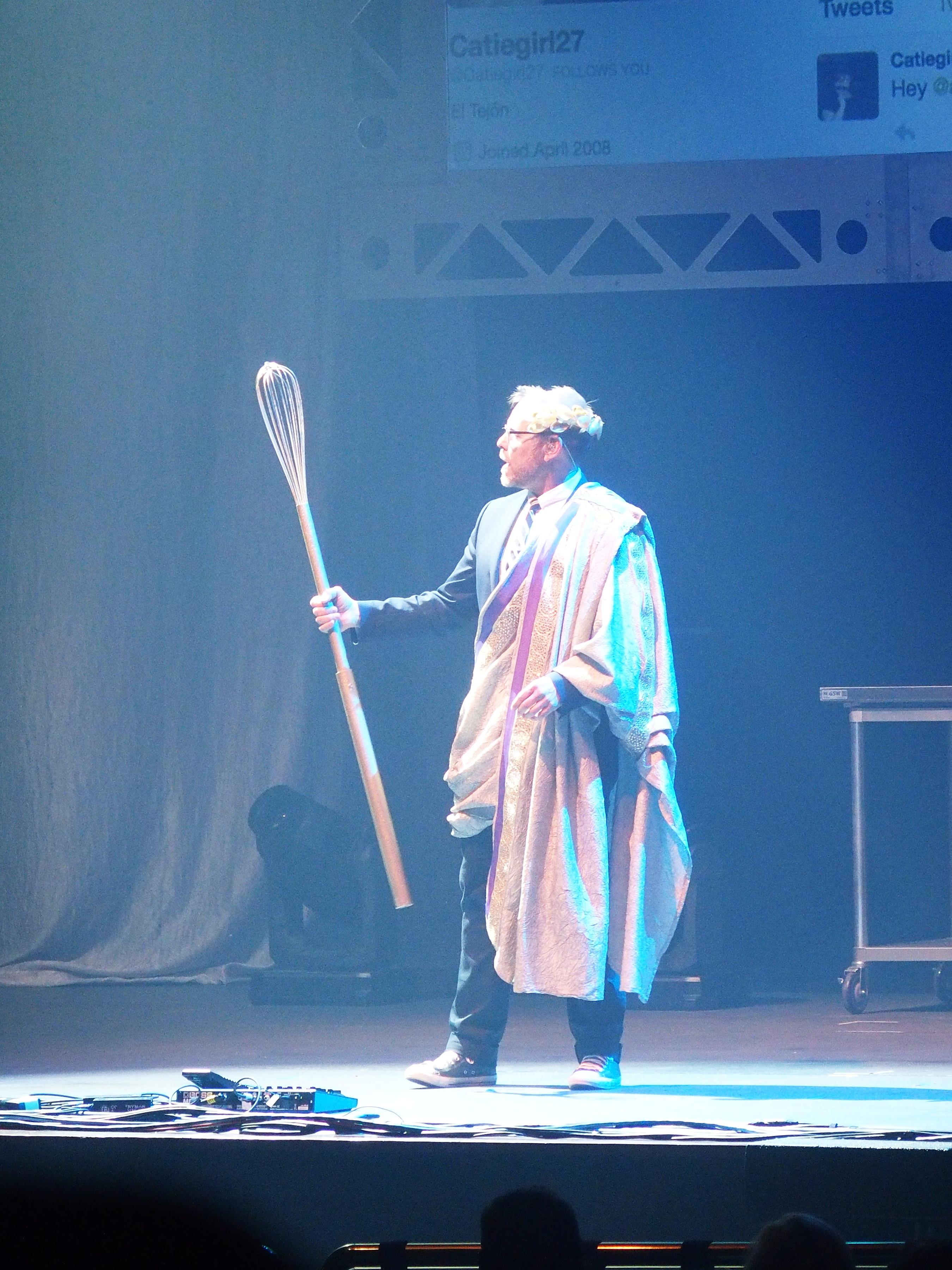 Picture #2: Alton Brown as a food god Thumb: 450x338, 36,936 bytes (37K) Small: 900x698, 108,917 bytes (107K), (html file) Large: 3600x2700, 2,667,533 bytes (2.5M), (html file) Copyright, Michael Meissner 2016, All rights reserved Olympus Stylus-1 camera f/2.8, ISO 1000, 1/50 sec, 42.5mm, auto mode, vivid color, SHQ, matrix metering, IS Auto, noise reduction auto, noise filter low 35mm equivalent focal length 200.0mm Programs used: adjusttime, crop, raw therapee Taken by Michael Meissner on April 27, 2016 19:43:41 Last modified on May 09, 2016 at 10:23 |