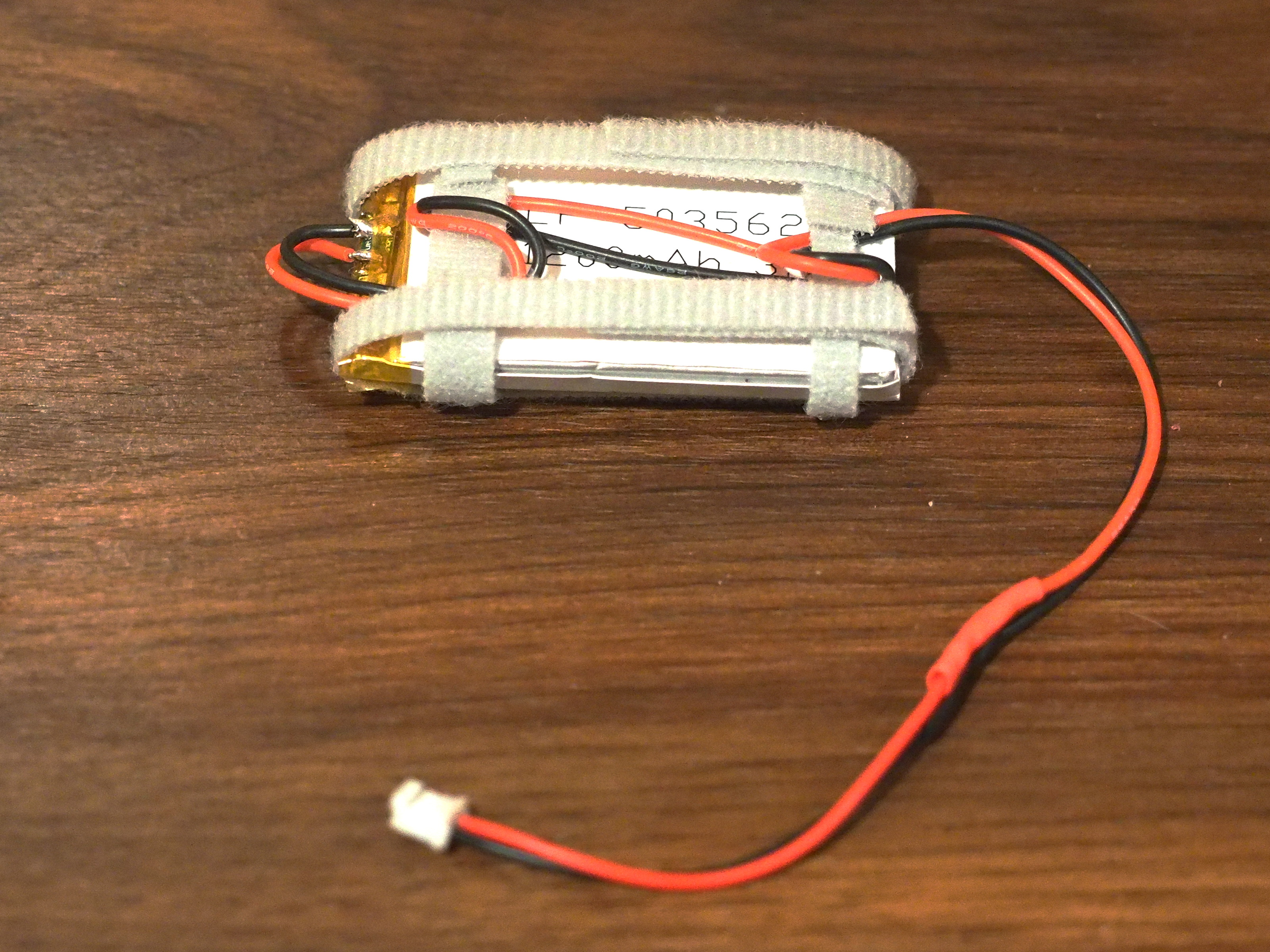 Picture #1: Strain relief for Lithium Ion Polymer battery Small: 800x623, 96,342 bytes (95K), (html file) Large: 3200x2400, 1,992,519 bytes (1.9M), (html file) Copyright, Michael Meissner 2016, All rights reserved Olympus E-M1-I camera with Olympus-m43 12-40mm f/2.8 lens f/2.8, ISO 5000, 1/80 sec, 40.0mm, auto mode, vivid color, SHQ, matrix metering, auto + manual focus, IS Auto, noise reduction auto, noise filter low 35mm equivalent focal length 80.0mm Programs used: crop, raw therapee Taken by Michael Meissner on May 21, 2016 00:33:56 Last modified on May 21, 2016 at 00:45 I seemed to have bad luck where the wires for my Lithium Ion Polymer batteries became detached from the battery. I soldered longer wires on to the battery, wrapped the battery in velcro (tm) and made a strain relief by looping the wires twice around the velco pieces. |