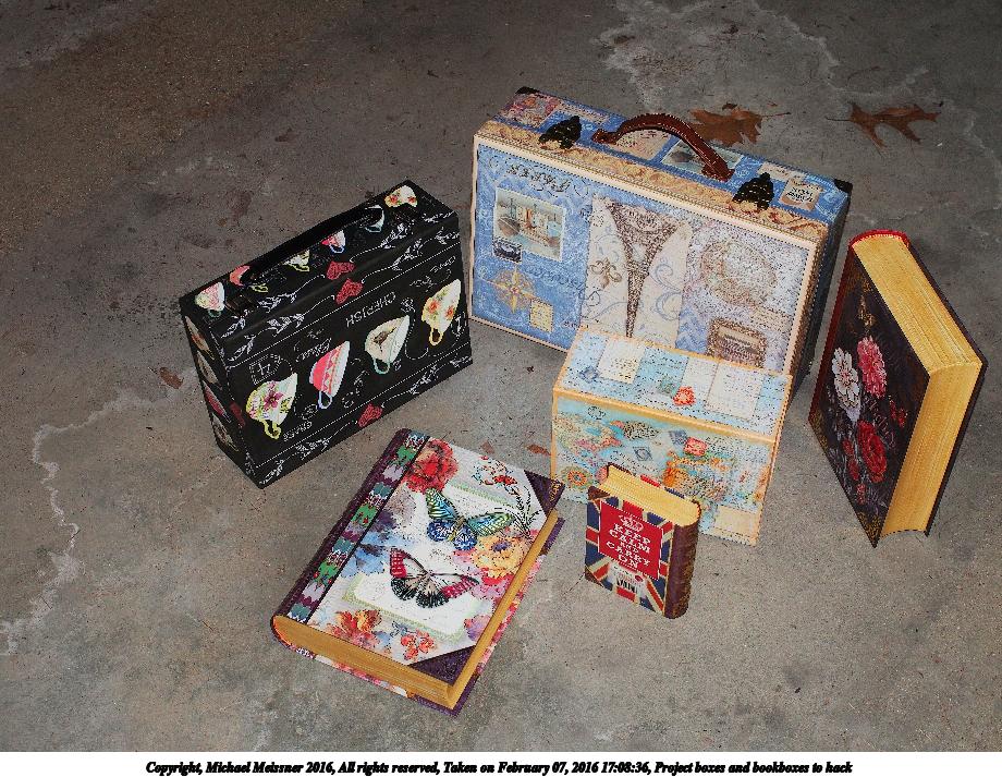 Picture #8: Project boxes and bookboxes to hack Small: 920x713, 195,839 bytes (192K), (html file) Large: 4600x3450, 6,034,058 bytes (5.8M), (html file) Copyright, Michael Meissner 2016, All rights reserved Olympus E-M5-I camera with Olympus-m43 12-40mm f/2.8 lens f/5.6, ISO 800, flash (+0.33 flash compensation), 1/60 sec, 26.0mm, aperture priority, vivid color, matrix metering, auto + manual focus, IS1 (All Direction Shake IS), noise filter low 35mm equivalent focal length 52.0mm Programs used: crop, raw therapee Taken by Michael Meissner on February 07, 2016 17:08:36 Last modified on February 07, 2016 at 17:53 |