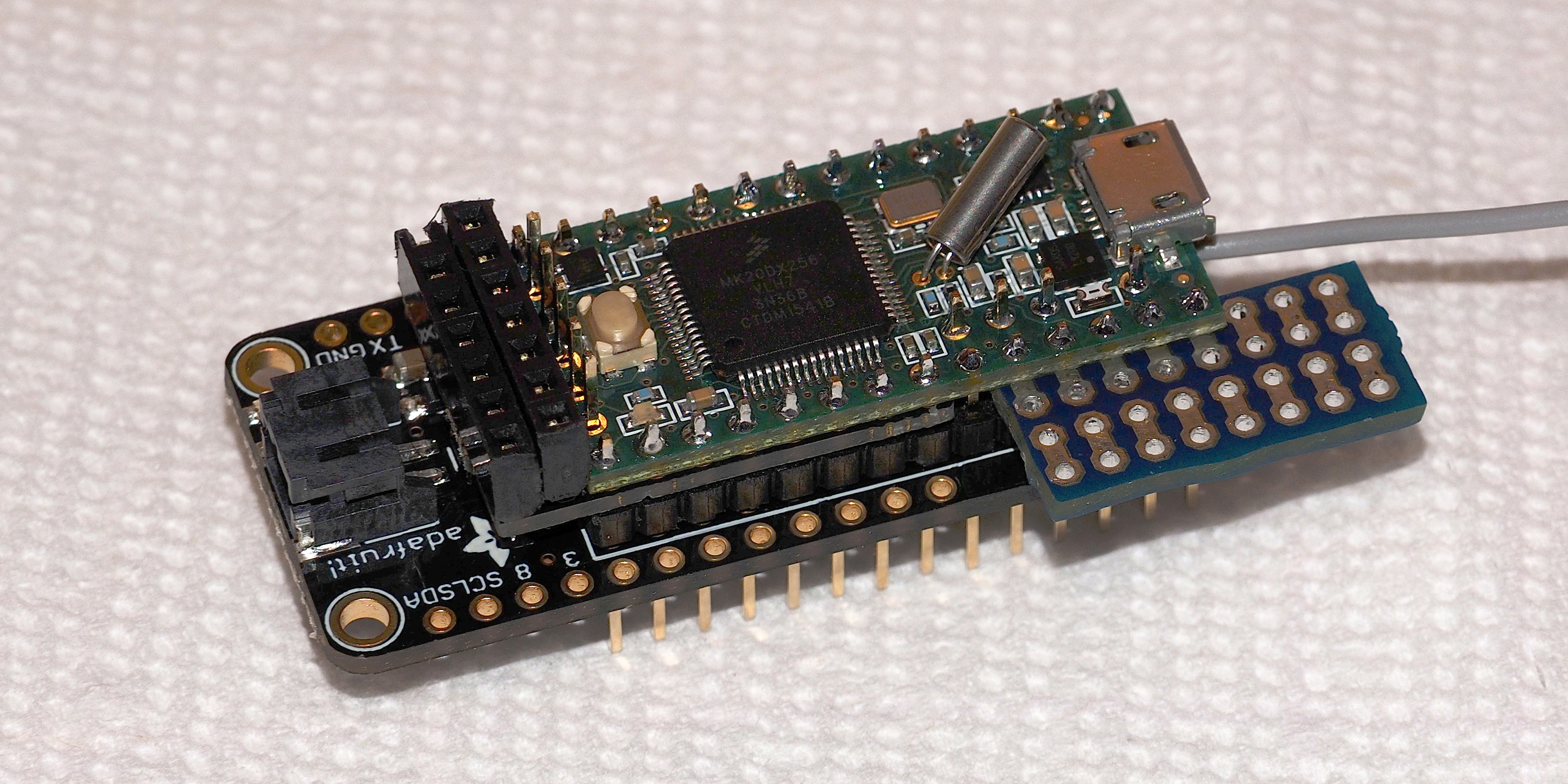 Picture #2: Teensy 3.2, FrankB shield, plus Feather adapter shield Small: 800x423, 88,333 bytes (87K), (html file) Large: 3200x1600, 4,238,375 bytes (4.0M), (html file) Copyright, Michael Meissner 2016, All rights reserved Olympus E-M1-I camera with Olympus-m43 14-150mm-II f/4.0-5.6 lens f/8.0, ISO 200, flash (+0.33 flash compensation), 1/60 sec, 80.0mm, aperture priority, vivid color, SHQ, flash (5500K), matrix metering, IS Auto, noise reduction auto, noise filter low, anti-shock 35mm equivalent focal length 160.0mm Programs used: crop, gimp, raw therapee Taken by Michael Meissner on August 13, 2016 21:46:09 Last modified on August 15, 2016 at 01:20 |