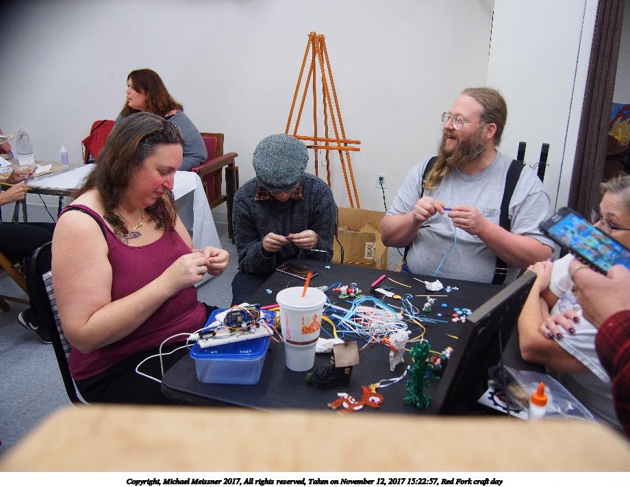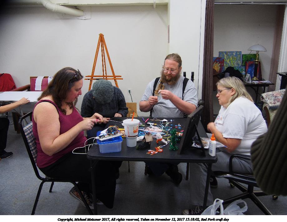 Picture #5: Red Fork craft day #2 Small: 920x712, 104,401 bytes (102K), (html file) Large: 4600x3450, 7,189,557 bytes (6.9M), (html file) Copyright, Michael Meissner 2017, All rights reserved Olympus E-PM2 camera with Olympus-m43 14-42mm-IIR f/3.5-5.6 lens f/3.7, ISO 500, 1/60 sec, 17.0mm, auto mode, vivid color, matrix metering, IS1 (All Direction Shake IS), noise filter low 35mm equivalent focal length 34.0mm Programs used: crop Taken by Michael Meissner on November 12, 2017 15:17:48 Last modified on January 06, 2017 at 08:58 |