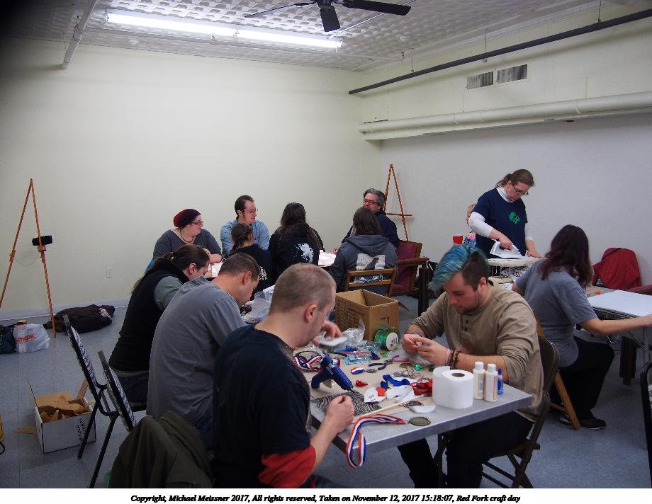 Picture #3: Red Fork craft day #4 Small: 920x712, 108,669 bytes (107K), (html file) Large: 4600x3450, 7,246,362 bytes (6.9M), (html file) Copyright, Michael Meissner 2017, All rights reserved Olympus E-PM2 camera with Olympus-m43 14-42mm-IIR f/3.5-5.6 lens f/3.5, ISO 400, 1/60 sec, 14.0mm, auto mode, vivid color, matrix metering, IS1 (All Direction Shake IS), noise filter low 35mm equivalent focal length 28.0mm Programs used: crop Taken by Michael Meissner on November 12, 2017 15:18:07 Last modified on January 06, 2017 at 08:59 |