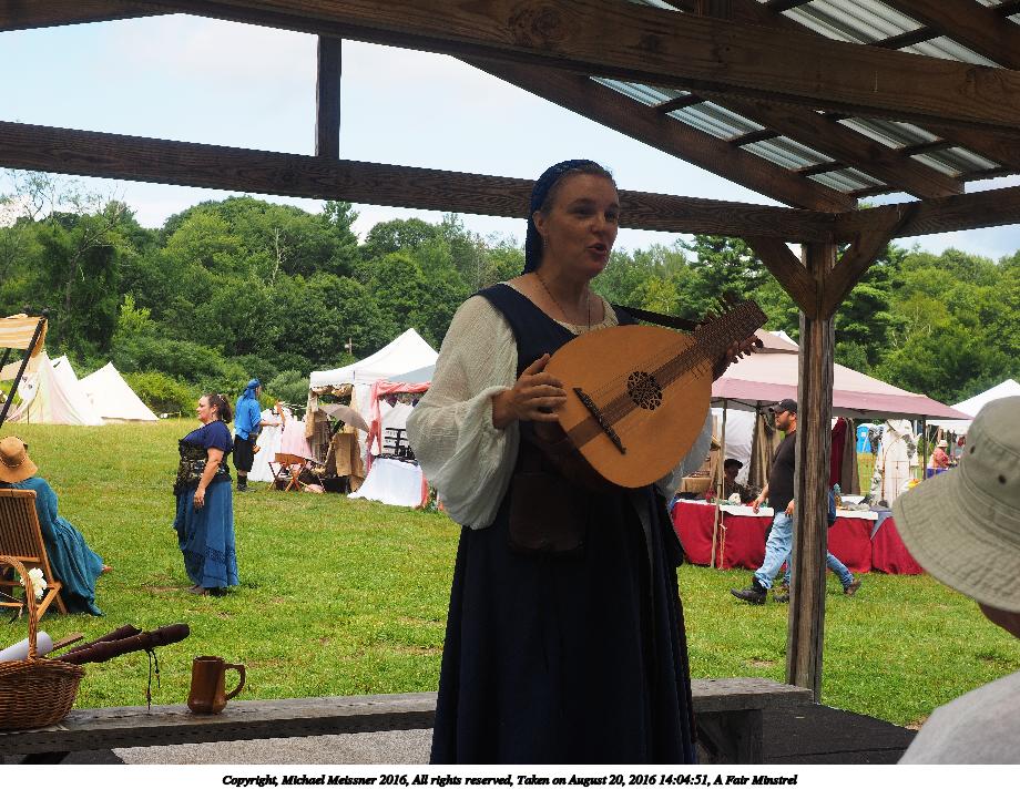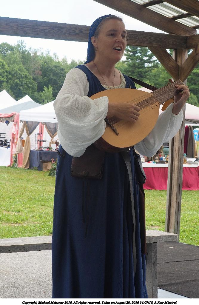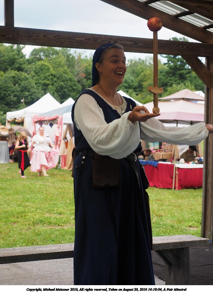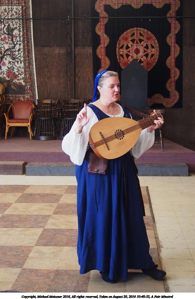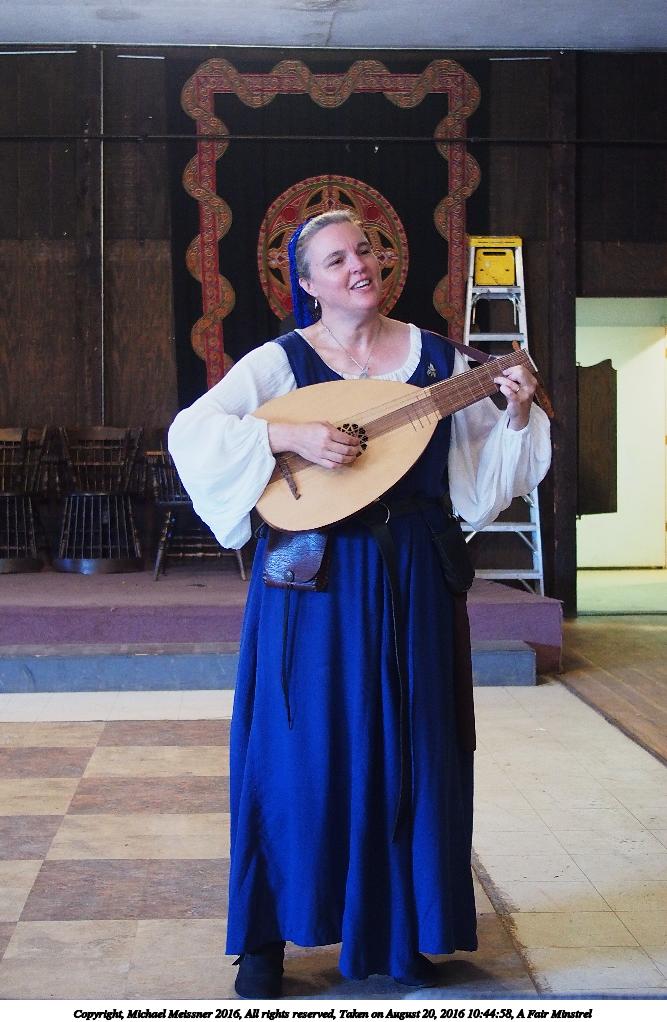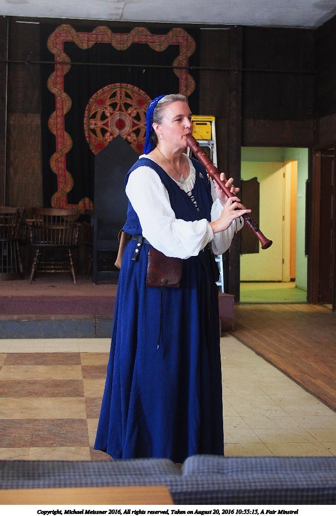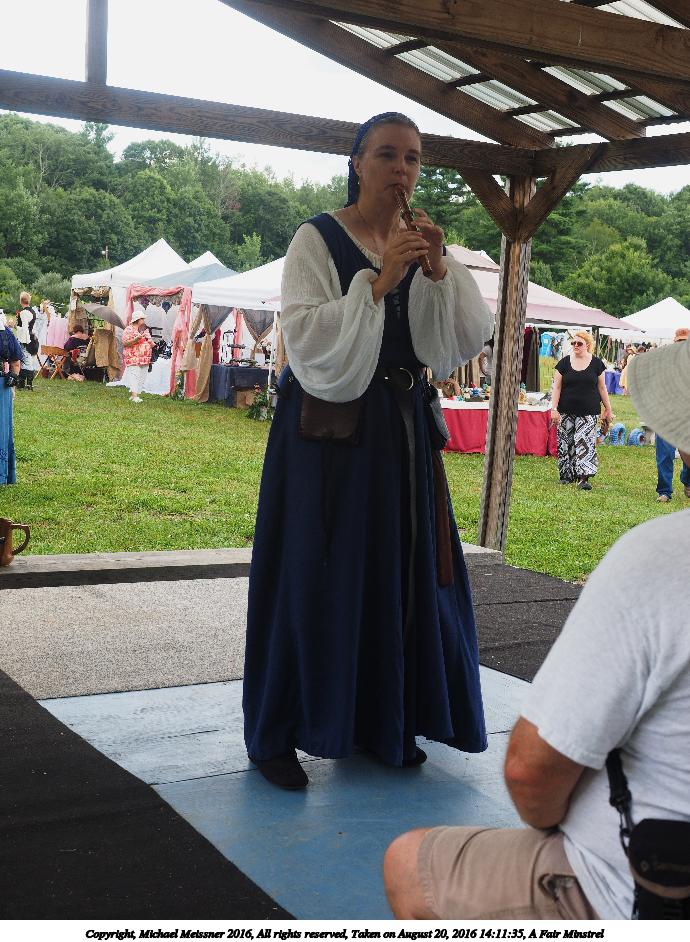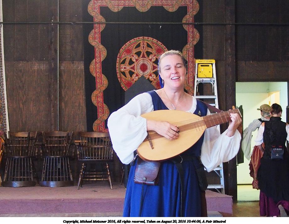Picture #8: A Fair Minstrel #7 Small: 920x712, 128,841 bytes (126K), (html file) Large: 4600x3450, 4,847,627 bytes (4.6M), (html file) Copyright, Michael Meissner 2016, All rights reserved Olympus E-M5-I camera with Panasonic 20mm lens f/1.7, ISO 1250, 1/60 sec, 20.0mm, auto mode, vivid color, matrix metering, digital zoom x2, IS1 (All Direction Shake IS), noise filter low 35mm equivalent focal length 80.0mm, digital zoom x2 Programs used: adjusttime, crop, raw therapee Taken by Michael Meissner on August 20, 2016 10:44:06 Last modified on May 05, 2017 at 18:14 |