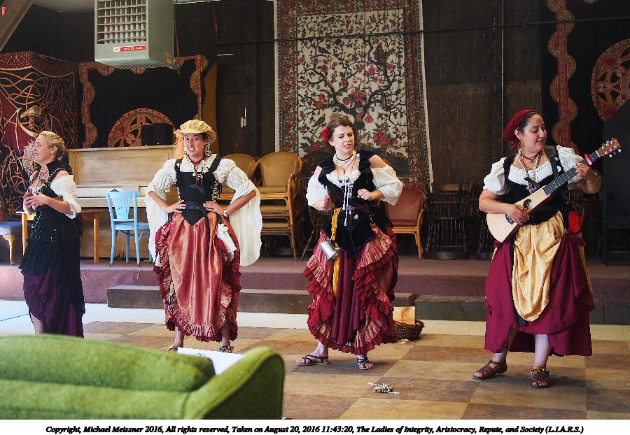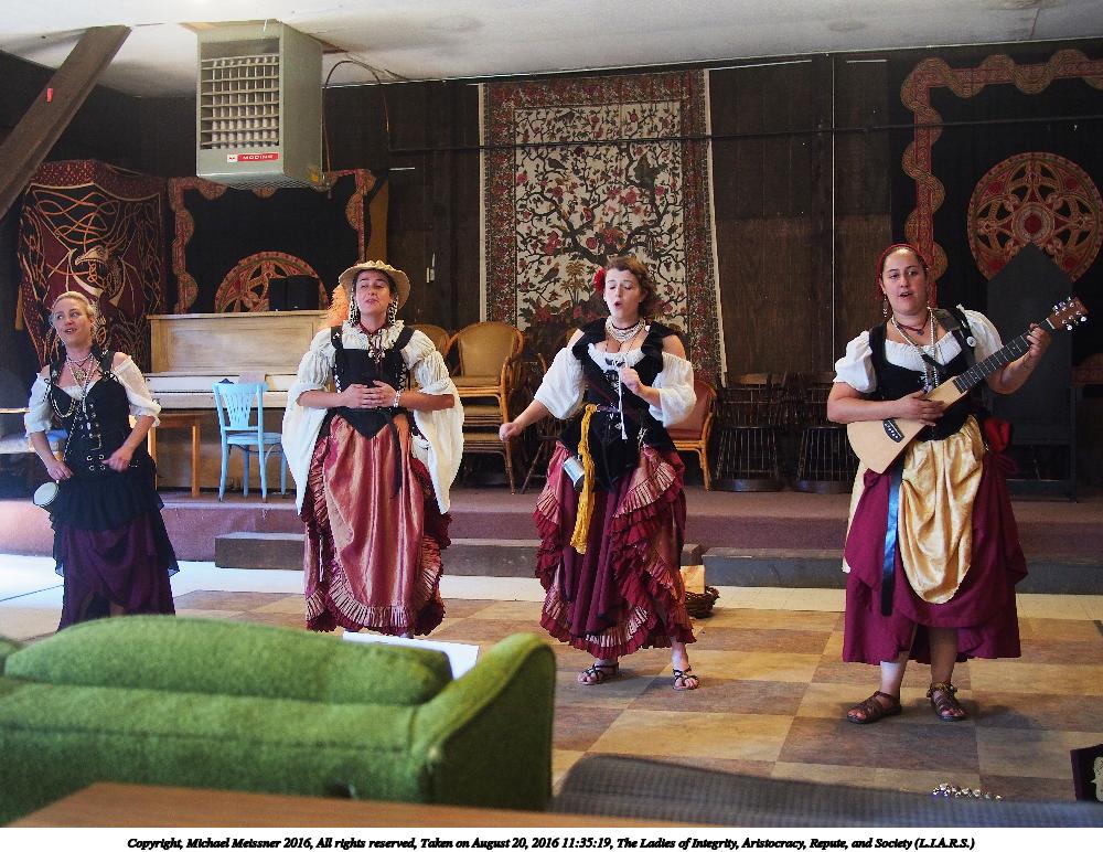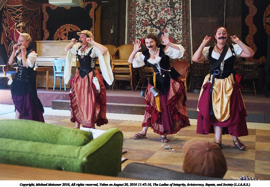 Picture #9: The Ladies of Integrity, Aristocracy, Repute, and Society (L.I.A.R.S.) #8 Small: 800x622, 130,039 bytes (127K), (html file) Large: 3200x2400, 5,656,830 bytes (5.4M), (html file) Copyright, Michael Meissner 2016, All rights reserved Olympus E-M5-I camera with Panasonic 20mm lens f/1.7, ISO 800, 1/60 sec, 20.0mm, auto mode, vivid color, matrix metering, bias -0.3, IS1 (All Direction Shake IS), noise filter low 35mm equivalent focal length 40.0mm Programs used: adjusttime, crop, gimp, raw therapee Taken by Michael Meissner on August 20, 2016 11:57:21 Last modified on May 05, 2017 at 19:02 |