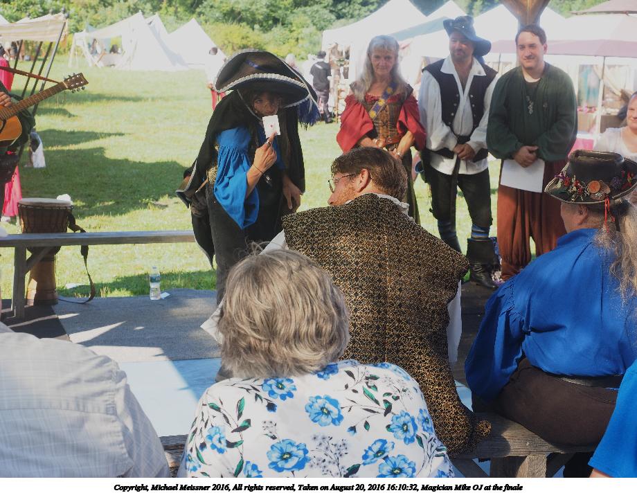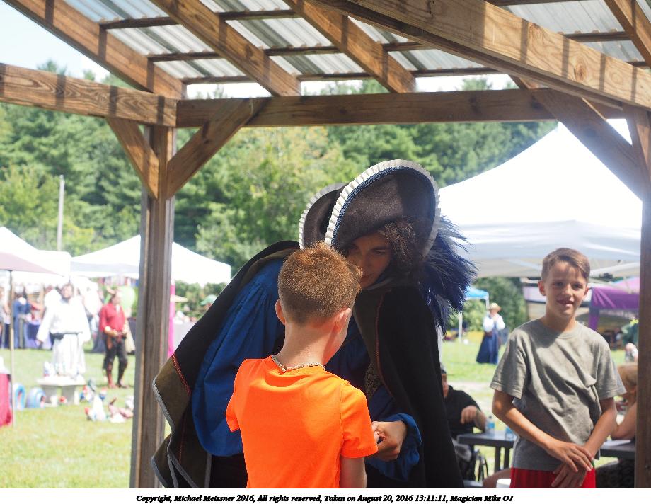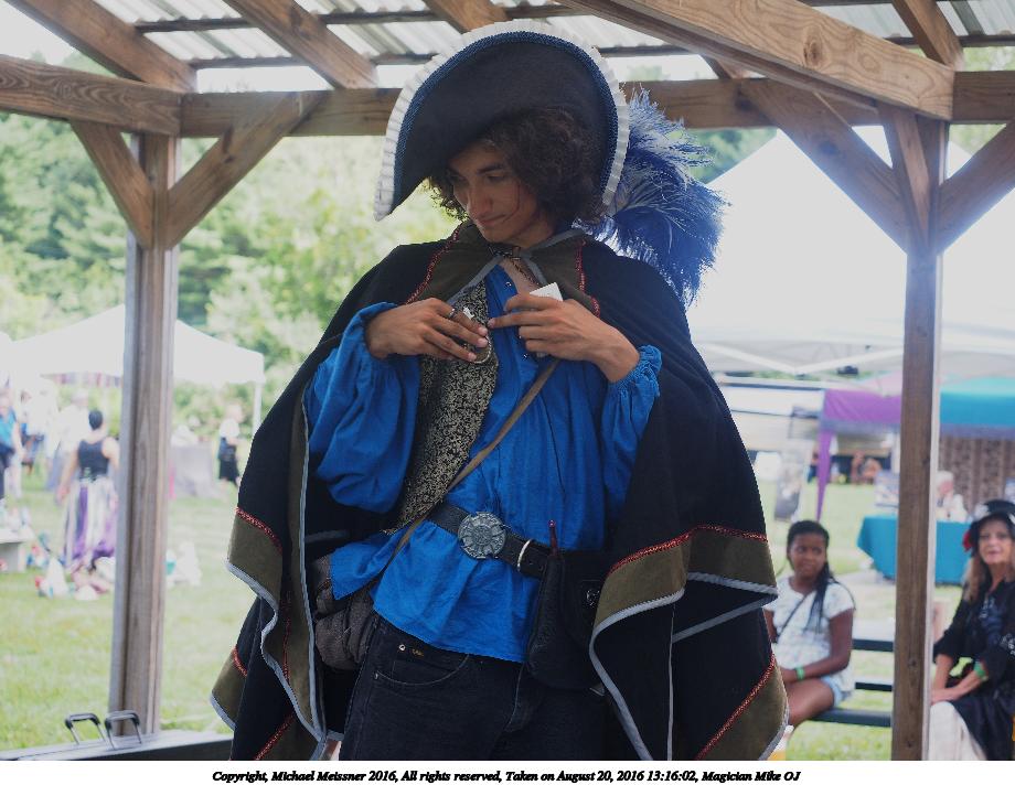 Picture #5: Magician Mike OJ #5 Small: 920x712, 144,624 bytes (142K), (html file) Large: 4600x3450, 5,234,049 bytes (5.0M), (html file) Copyright, Michael Meissner 2016, All rights reserved Olympus E-M1-I camera with Panasonic 20mm lens f/1.7, ISO 640, 1/60 sec, 20.0mm, auto mode, vivid color, SHQ, matrix metering, bias -0.3, digital zoom x2, IS Auto, noise filter low 35mm equivalent focal length 80.0mm, digital zoom x2 Programs used: crop, raw therapee Taken by Michael Meissner on August 21, 2016 15:34:02 Last modified on May 06, 2017 at 20:51 |