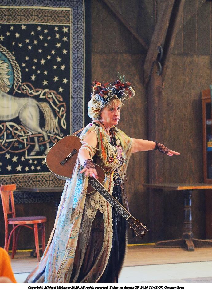 Picture #12: Granny Grue at the finale Small: 920x712, 177,559 bytes (174K), (html file) Large: 4600x3450, 6,562,649 bytes (6.3M), (html file) Copyright, Michael Meissner 2016, All rights reserved Olympus E-M1-I camera with Olympus-m43 12-40mm f/2.8 lens f/6.3, ISO 200, 1/250 sec, 38.0mm, auto mode, vivid color, SHQ, center weight metering, bias 0.3, IS Auto, noise reduction auto, noise filter low, anti-shock 35mm equivalent focal length 76.0mm Programs used: crop, raw therapee Taken by Michael Meissner on August 20, 2016 16:21:38 Last modified on May 04, 2017 at 18:33 |