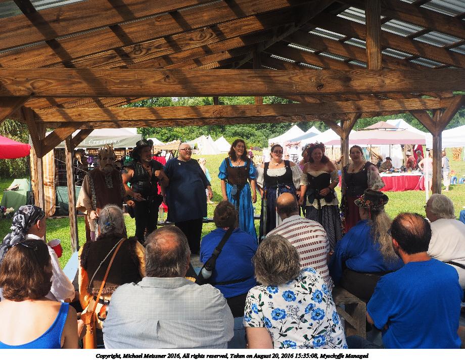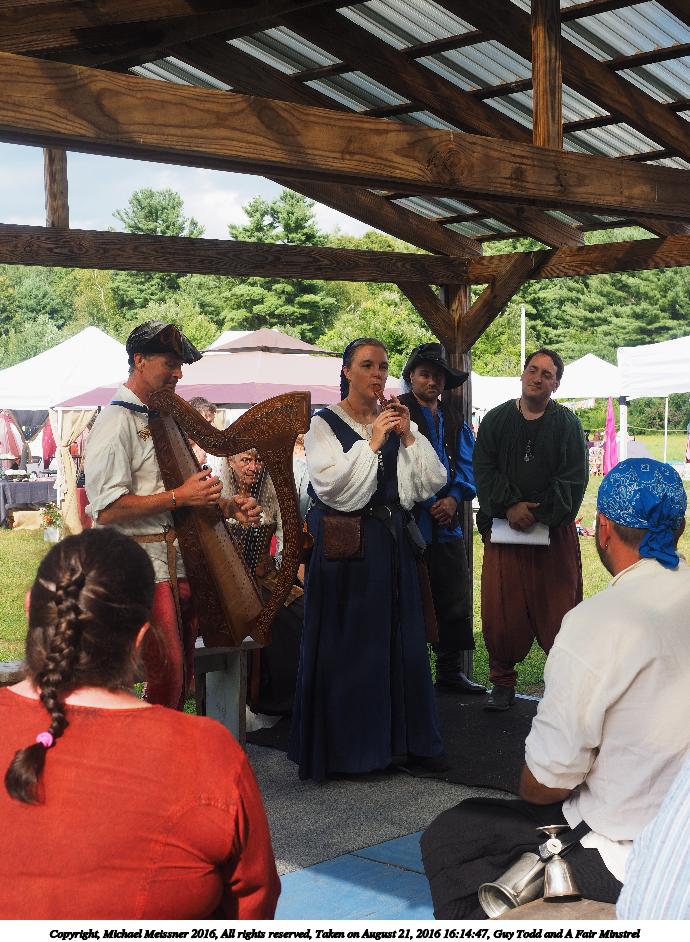 Picture #9: Guy Todd and A Fair Minstrel Small: 920x712, 163,562 bytes (160K), (html file) Large: 4600x3450, 5,934,381 bytes (5.7M), (html file) Copyright, Michael Meissner 2016, All rights reserved Olympus E-M1-I camera with Olympus-m43 12-40mm f/2.8 lens f/5.6, ISO 200, 1/160 sec, 34.0mm, auto mode, vivid color, SHQ, center weight metering, bias 0.7, IS Auto, noise reduction auto, noise filter low, anti-shock 35mm equivalent focal length 68.0mm Programs used: crop, raw therapee Taken by Michael Meissner on August 20, 2016 16:15:26 Last modified on May 04, 2017 at 18:32 |