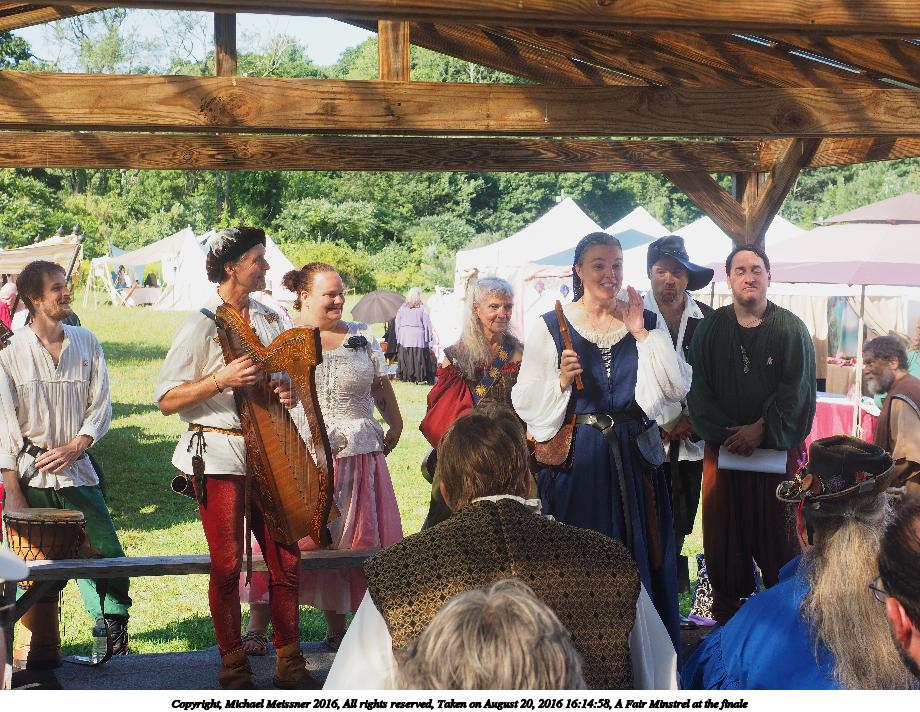 Picture #8: A Fair Minstrel at the finale Small: 920x712, 186,191 bytes (182K), (html file) Large: 4600x3450, 6,775,449 bytes (6.5M), (html file) Copyright, Michael Meissner 2016, All rights reserved Olympus E-M1-I camera with Olympus-m43 12-40mm f/2.8 lens f/5.6, ISO 200, 1/200 sec, 34.0mm, auto mode, vivid color, SHQ, center weight metering, bias 0.7, IS Auto, noise reduction auto, noise filter low, anti-shock 35mm equivalent focal length 68.0mm Programs used: crop, raw therapee Taken by Michael Meissner on August 20, 2016 16:14:58 Last modified on May 04, 2017 at 18:31 |