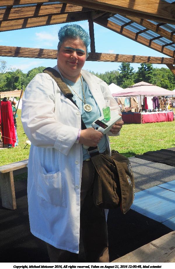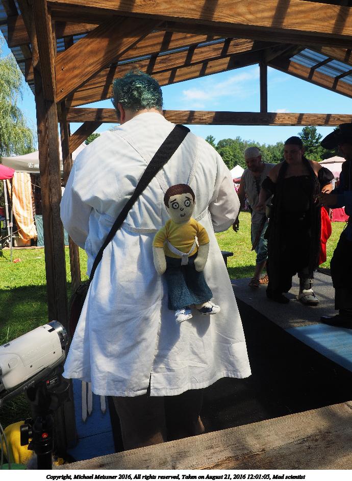 Picture #13: Mad scientist Small: 600x922, 135,174 bytes (133K), (html file) Large: 2400x3600, 5,137,558 bytes (4.9M), (html file) Copyright, Michael Meissner 2016, All rights reserved Olympus E-M1-I camera with Olympus-m43 12-40mm f/2.8 lens f/6.3, ISO 200, 1/400 sec, 12.0mm, auto mode, vivid color, SHQ, center weight metering, IS Auto, noise filter low 35mm equivalent focal length 24.0mm Programs used: crop, gimp, raw therapee, rotate left Taken by Michael Meissner on August 21, 2016 12:00:48 Last modified on May 05, 2017 at 19:03 |