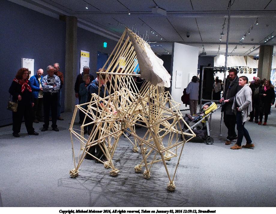 Picture #40: Strandbeest #3 920x713, 171,877 bytes (168K), (html file) Copyright, Michael Meissner 2016, All rights reserved Olympus E-M5-I camera with Olympus-m43 12-40mm f/2.8 lens f/2.8, ISO 2000, 1/60 sec, 18.0mm, auto mode, vivid color, matrix metering, IS1 (All Direction Shake IS), noise filter low 35mm equivalent focal length 36.0mm Taken by Michael Meissner on January 02, 2016 12:59:12 Last modified on January 02, 2016 at 22:47 |
