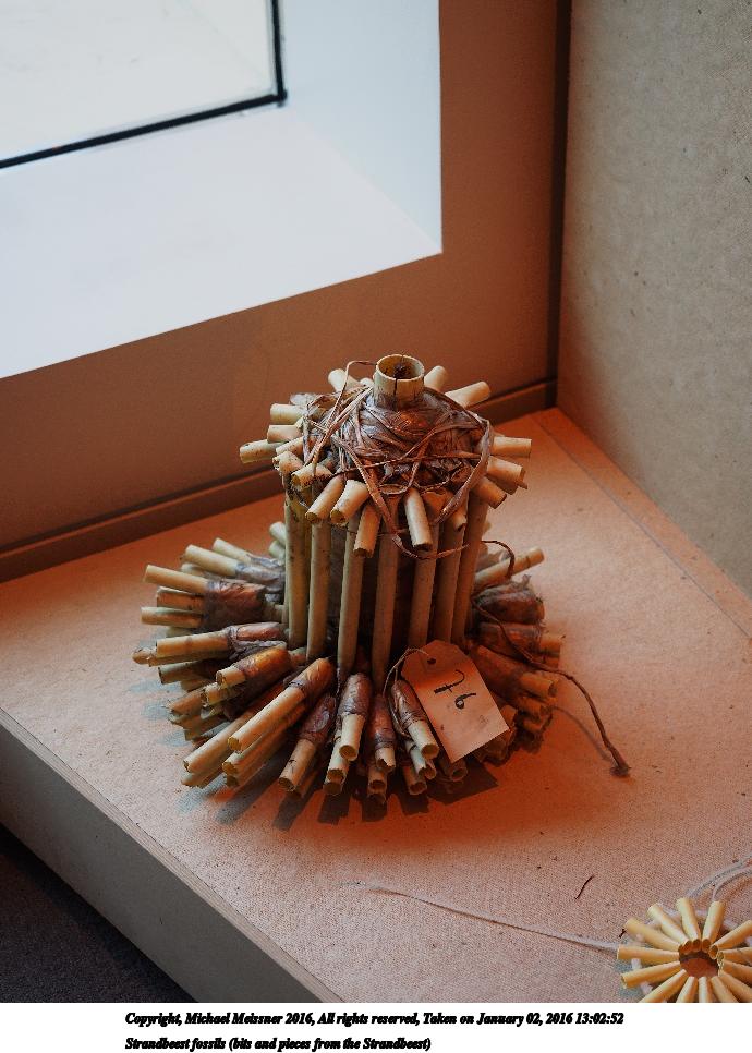 Picture #37: Strandbeest fossils (bits and pieces from the Strandbeest) 690x966, 151,409 bytes (148K), (html file) Copyright, Michael Meissner 2016, All rights reserved Olympus E-M5-I camera with Olympus-m43 12-40mm f/2.8 lens f/2.8, ISO 800, 1/60 sec, 12.0mm, auto mode, vivid color, matrix metering, IS1 (All Direction Shake IS), noise filter low 35mm equivalent focal length 24.0mm Programs used: crop, raw therapee, rotate left Taken by Michael Meissner on January 02, 2016 13:01:26 Last modified on January 02, 2016 at 22:48 |