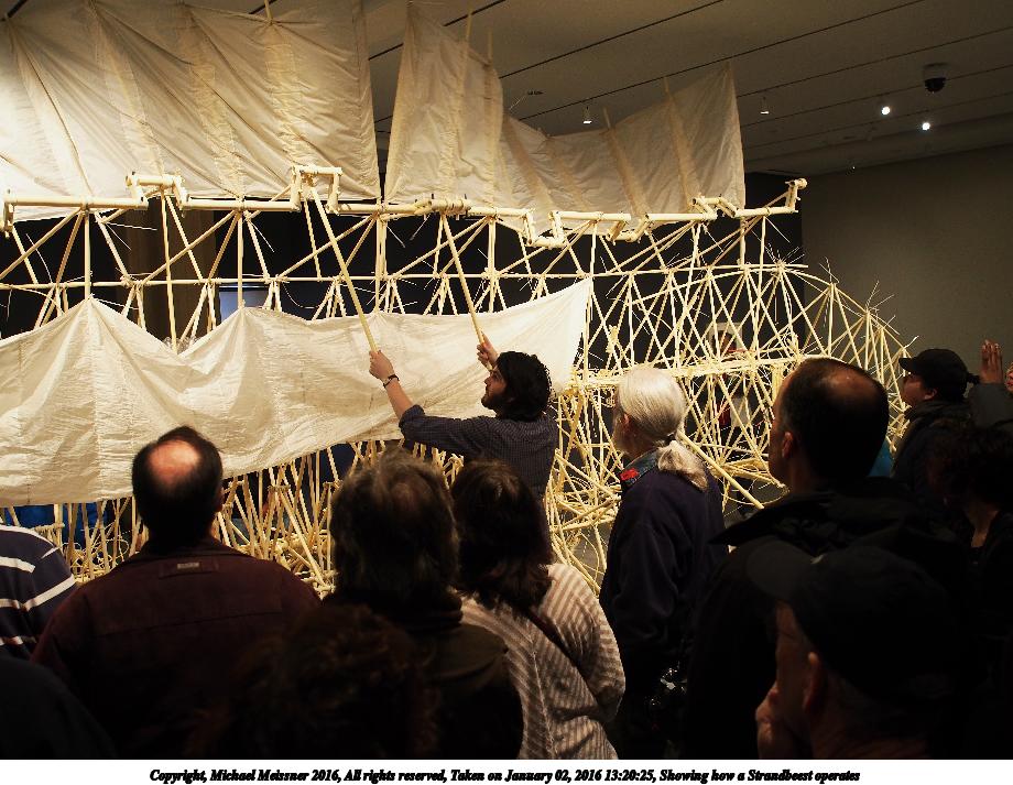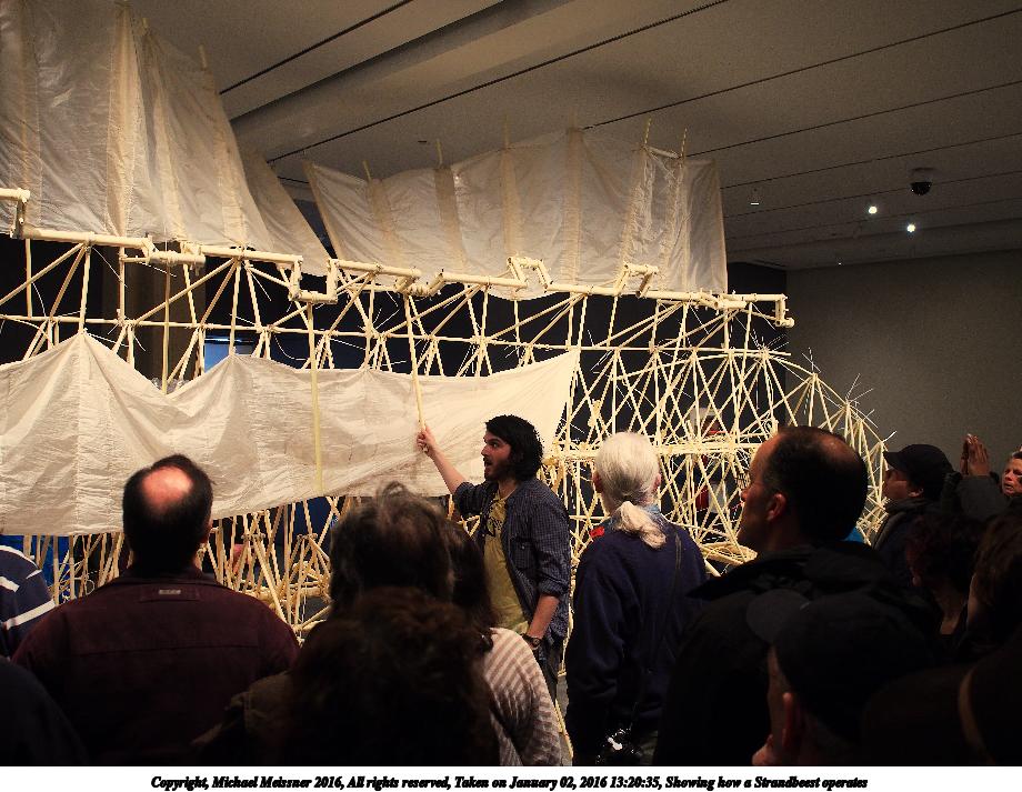 Picture #23: Showing how a Strandbeest operates #2 920x713, 140,766 bytes (138K), (html file) Copyright, Michael Meissner 2016, All rights reserved Olympus E-M5-I camera with Olympus-m43 12-40mm f/2.8 lens f/2.8, ISO 640, 1/60 sec, 17.0mm, auto mode, vivid color, matrix metering, IS1 (All Direction Shake IS), noise filter low 35mm equivalent focal length 34.0mm Programs used: crop, raw therapee Taken by Michael Meissner on January 02, 2016 13:20:35 Last modified on January 02, 2016 at 22:53 |
