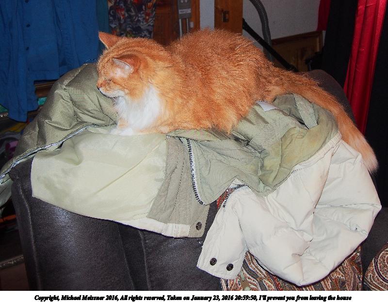 Picture #1: I'll prevent you from leaving the house 800x623, 107,270 bytes (105K), (html file) Copyright, Michael Meissner 2016, All rights reserved Olympus E-PM2 camera with Olympus-m43 14-42mm-IIR f/3.5-5.6 lens f/3.6, ISO 250, flash (+0.33 flash compensation), 1/60 sec, 16.0mm, auto mode, vivid color, matrix metering, IS1 (All Direction Shake IS), noise filter low 35mm equivalent focal length 32.0mm Programs used: crop, raw therapee Taken by Michael Meissner on January 23, 2016 20:59:50 Last modified on February 05, 2016 at 14:42 |