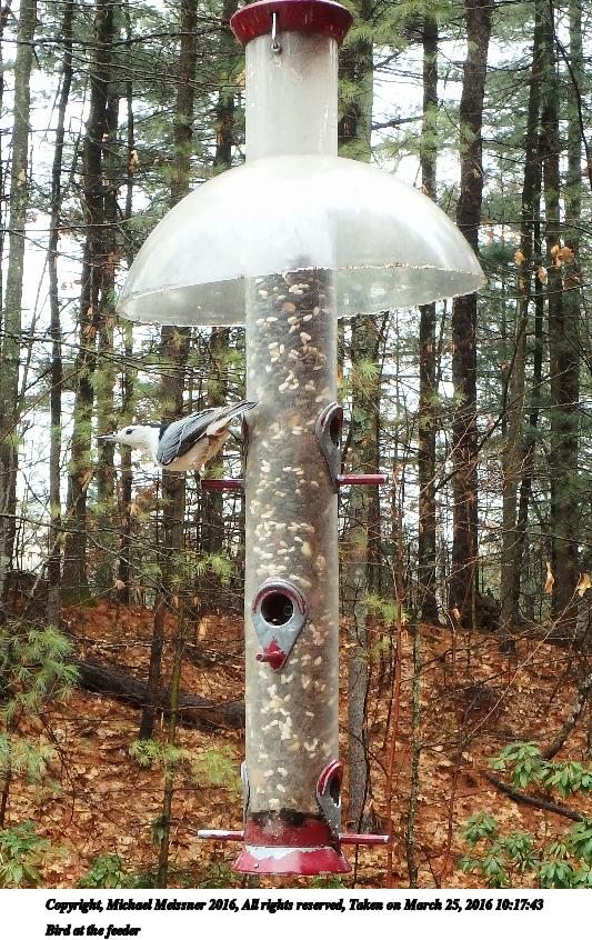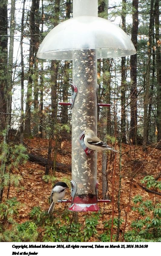 Picture #11: Bird at the feeder #2 533x846, 177,066 bytes (173K), (html file) Copyright, Michael Meissner 2016, All rights reserved Olympus TG-860 camera f/5.2, ISO 200, 1/60 sec, 7.5mm, auto mode, natural color, HQ, matrix metering 35mm equivalent focal length 42.0mm Taken by Michael Meissner on March 25, 2016 10:18:32 Last modified on March 25, 2016 at 11:47 |