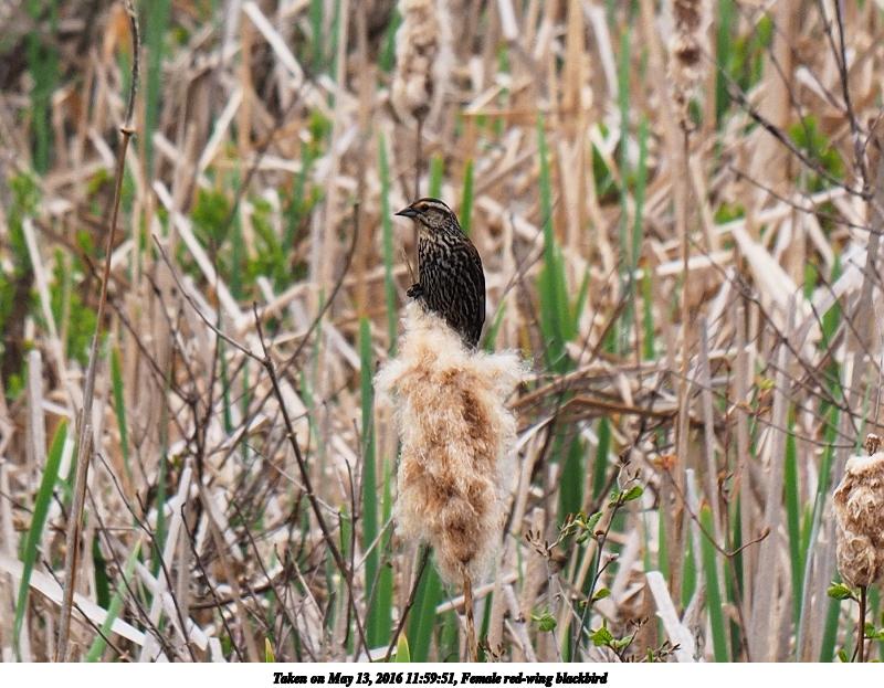 Picture #42: Female red-wing blackbird 800x623, 114,469 bytes (112K), (html file) Olympus E-M1-I camera with Olympus 50-200mm lens f/6.3, ISO 200, 1/500 sec, 130.0mm, shutter priority, vivid color, SHQ, matrix metering, bias 0.3, digital zoom x2, IS Auto, noise filter low 35mm equivalent focal length 521.0mm, digital zoom x2 Programs used: crop, raw therapee Taken by Michael Meissner on May 13, 2016 11:59:51 Last modified on May 15, 2016 at 20:20 |