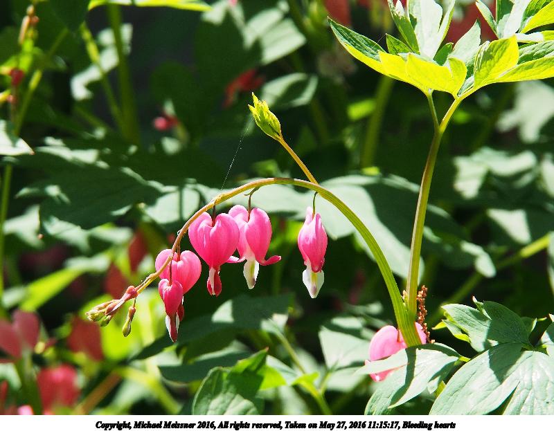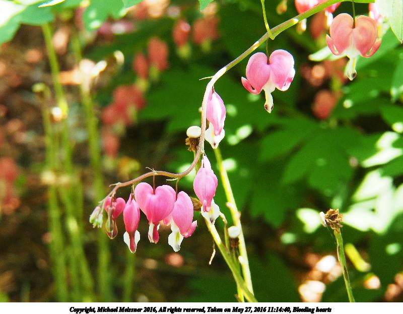Picture #8: Bleeding hearts #2 800x623, 97,193 bytes (95K), (html file) Copyright, Michael Meissner 2016, All rights reserved Olympus E-M5-I camera with Olympus-m43 14-150mm-II f/4.0-5.6 lens f/5.6, ISO 200, 1/250 sec, 100.0mm, auto mode, vivid color, matrix metering, IS1 (All Direction Shake IS), noise reduction auto, noise filter low 35mm equivalent focal length 200.0mm Programs used: crop, raw therapee Taken by Michael Meissner on May 27, 2016 11:15:17 Last modified on May 27, 2016 at 09:59 |