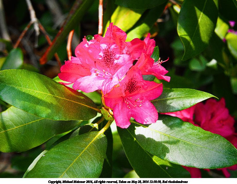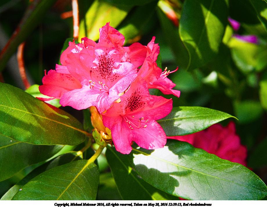 Picture #3: Red rhododendrons 920x713, 151,543 bytes (148K), (html file) Copyright, Michael Meissner 2016, All rights reserved Olympus E-M5-I camera with Olympus-m43 14-150mm-II f/4.0-5.6 lens f/5.6, ISO 200, 1/100 sec, 47.0mm, auto mode, vivid color, matrix metering, IS1 (All Direction Shake IS), noise reduction auto, noise filter low 35mm equivalent focal length 94.0mm Programs used: crop, raw therapee Taken by Michael Meissner on May 28, 2016 12:38:50 Last modified on May 27, 2016 at 21:47 |