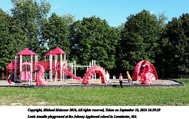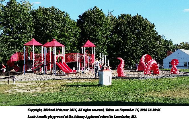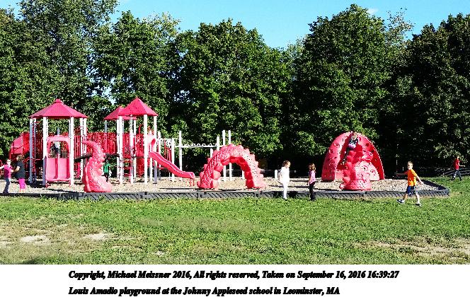 Picture #2: Louis Amadio playground at the Johnny Appleseed school in Leominster, MA #2 664x420, 117,088 bytes (115K), (html file) Copyright, Michael Meissner 2016, All rights reserved Samsung S5 phone f/2.2, ISO 40, 1/392 sec, 4.8mm, auto mode, center weight metering 35mm equivalent focal length 31.0mm Programs used: crop, raw therapee Taken by Michael Meissner on September 16, 2016 16:38:46 Last modified on September 18, 2016 at 00:08 |