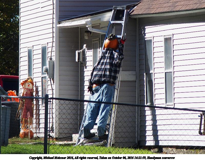 Picture #130: Handyman scarecrow 800x623, 148,288 bytes (145K), (html file) Copyright, Michael Meissner 2016, All rights reserved Olympus Stylus-1 camera f/3.5, ISO 100, 1/800 sec, 64.3mm, auto mode, vivid color, SHQ, matrix metering, IS Auto, noise reduction auto, noise filter low 35mm equivalent focal length 300.0mm Programs used: crop, gimp, raw therapee, rotate left Taken by Michael Meissner on October 06, 2016 14:21:59 Last modified on October 15, 2016 at 00:00 |